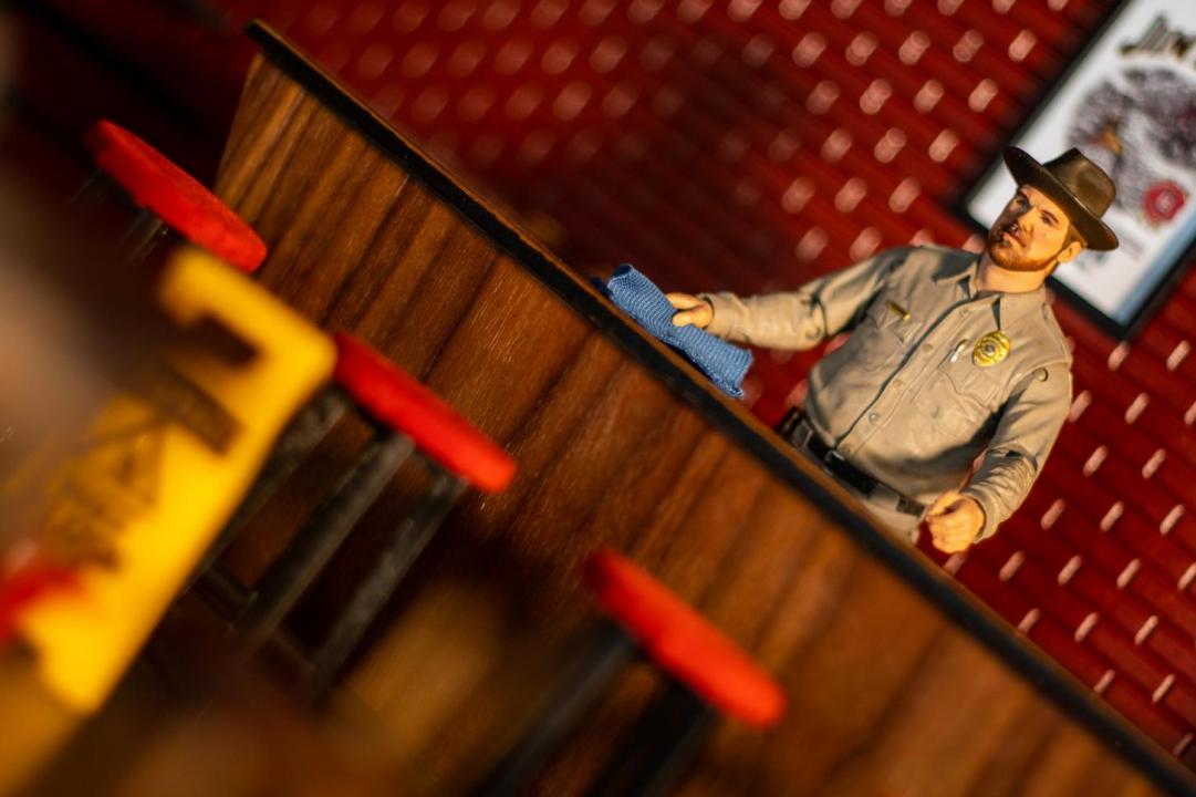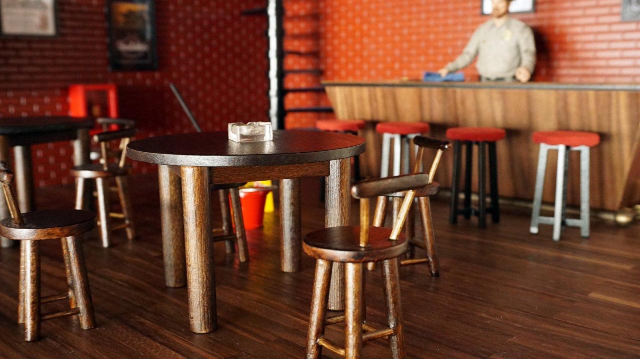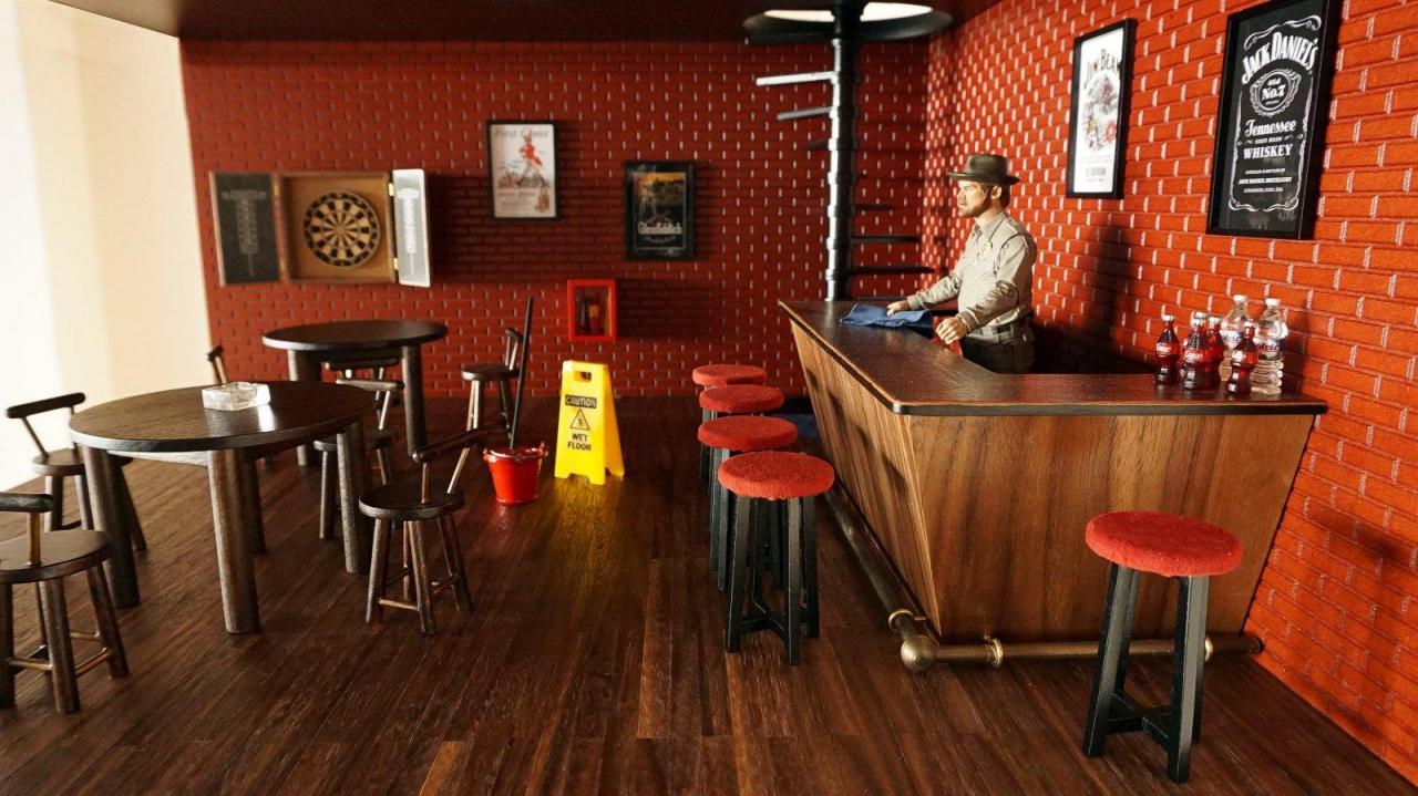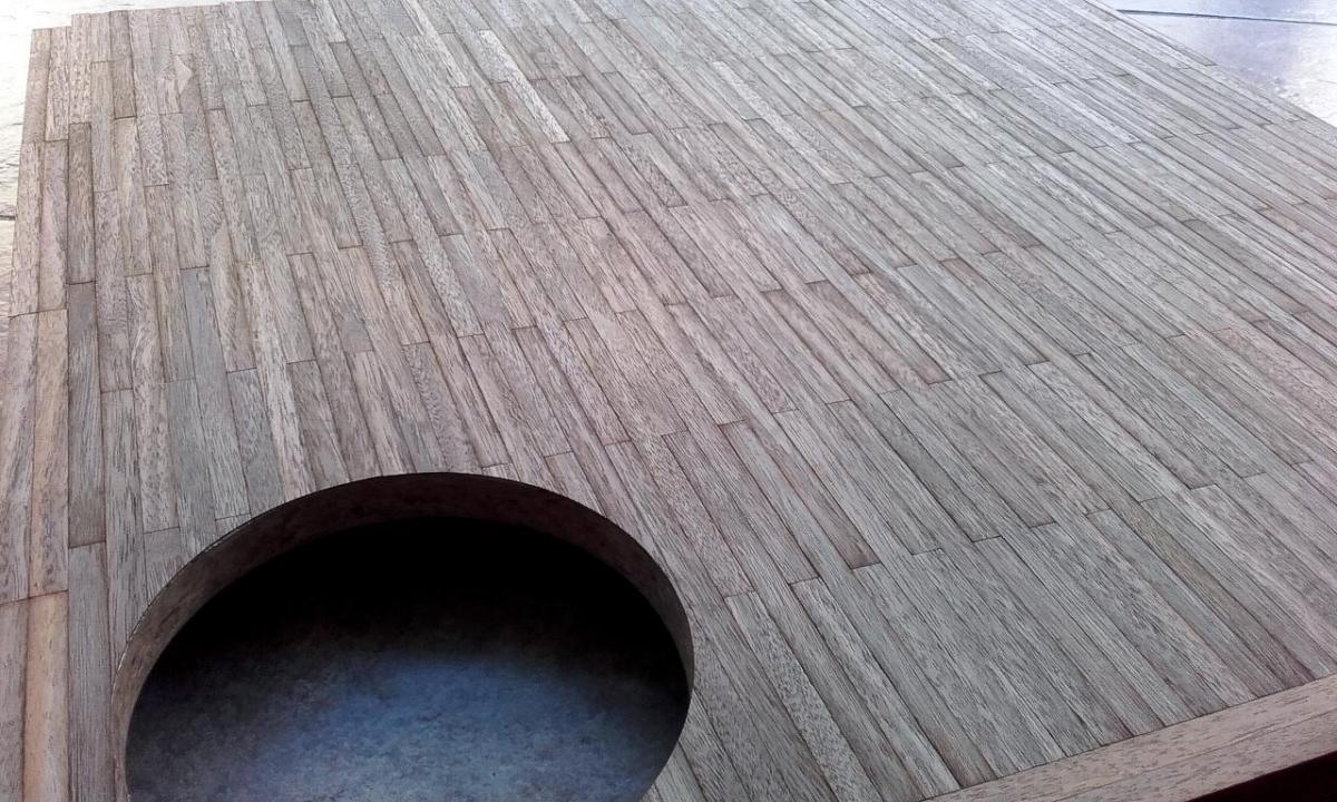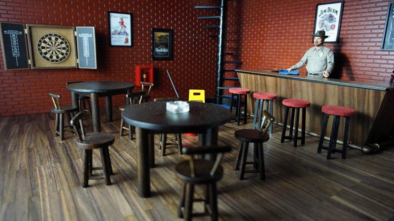 286 κομμάτια καπλαμά καρυδιάς κόπηκαν στο laser και κολλήθηκαν (3.5 ώρες) στο δάπεδο του μπαρ. Χρησιμοποίησα αυτοκόλλητη ταινία διπλής όψης 3Μ. Αυριο τρίψιμο και βερνίκι -