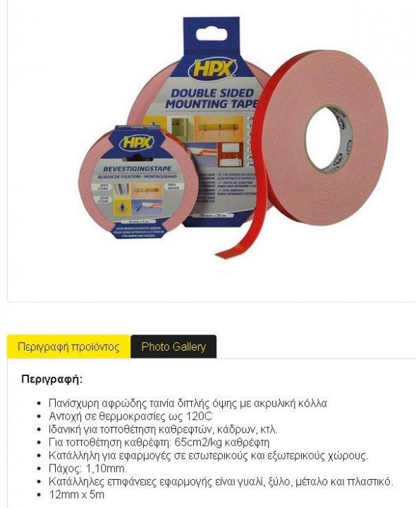Εγώ χρησιμοποιώ αυτήν τα τελευταία χρόνια... https://www.tool-market.gr/gr/product/7681/εξαρτήματα-αναλώσιμα/ταινίες/hpx-αυτοκόλλητη-ταινία-διπλής-όψεως-12mm-x-5m https://vectorbrands.gr/ταινίες-στερέωσης/ -