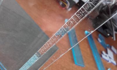 Kαλημέρα σήμερα συνεχίζω τις δοκιμές σε κόλληση plexiglass Η "κόλλα" που χρησιμοποίησα είναι χλωροφόρμιο. Το χρησιμοποιούμε σε καλά αεριζόμενους χώρους. Πάνω στο μπουκάλι γράφει "Υπόπτο για καρκίνο".... Υπάρχουν διάφορες ποιότητες plexiglass στην αγορά με κυριότερα τα χυτά (cast) και τα εξελασμένα (extruded) Στο extruded το αποτέλεσμα είναι αυτό... ... δημιουργεί σπασίματα και μπουρμπουλήθρες, κάτι που δεν συμβαίνει στο cast (το οποίο θα κολλήσω μετά). Μου το 'χε πει ένας επιγραφοποιός, και είπα να το δοκιμάσω και αυτό για να το ξέρω από πρώτο χέρι -