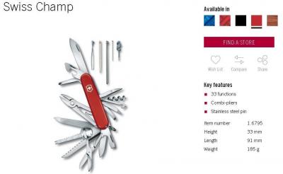 Τον ξέρω τον τρόπο που μαζευει Εχω κάτι παρόμοιο σε φθηνή κατασκευή (το τελευταίο από την πρώτη σειρά) Τόσα χρόνια.... έχω μαζέψει αυτά.... μέχρι στιγμής Το πιο βολικό από άποψη μεγέθους-βάρους και πληθώρας εργαλείων (33 χρήσεις) είναι το πρώτο στην δεύτερη σειρά. Victorinox Swiss Champ https://www.victorinox.com/global/en/Products/Swiss-Army-Knives/Medium-Pocket-Knives/Swiss-Champ/p/1.6795 Είναι το παλιότερο απ'ολα. Το 'χα πάρει πριν 20-25 χρόνια για 21.000 δραχμές. Τι να κάνουμε? Ημουν φανατικός του MacGyver (1985-1992) ... δεν έχανα επεισόδιο -