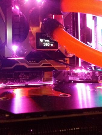 Με απόλυτη επιτυχία ολοκληρώθηκε το στήσιμο του πρώτου μου custom loop.Εκτός του κλασσικού leak test που έγινε και ήταν απόλυτα επιτυχές άλλα tests και δοκιμές δεν έχουνε γίνει ακόμα αλλά από τα λίγα που πρόλαβα να δω ήταν το coolant temp. που σε gaming κατάσταση κυμαίνονταν από 31,7~33,2 με θερμοκρασίες χώρου στους 29-30 βαθμούς.Στο idle ήταν στην ίδια ή το πολύ 1 βαθμό πάνω απ'την ambient.Εννοείται πως το οπτικό αποτέλεσμα εξέπληξε ακόμα κι εμένα τον ίδιο που είμαι fan του συγκεκριμένου χρωματικού συνδιασμού. Και για των λόγων το αληθές ακολουθούν οι απαραίτητες φωτό.Η φωτό του waterblock που δείχνει τη θερμοκρασία του ψυκτικού τραβήχτηκε με θερμοκρασία δωματίου 31,5 βαθμούς ακριβώς!Τα fan του ψυγείου στις 1300~1500 rmp δεν ακούγονται καθόλου (το χωρό βέβαια μόνον ήσυχο δεν το λές εξαιτίας του δρόμου κάτω) και η αντλία γυρίζει γύρω στις 1700~2000 rmp.