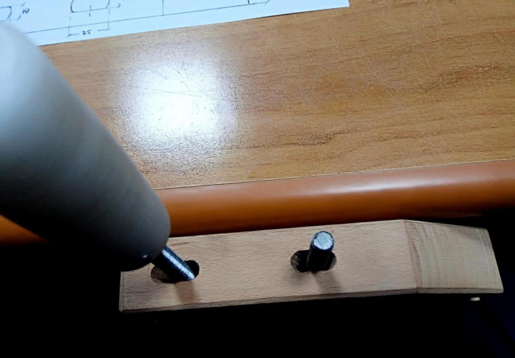 Κατασκευή σφιγκτήρων "παραλλήλων" σιαγόνων Η αγορά ενός σφιγκτήρα ¨παραλλήλων¨ είχε γίνει από εδώ: https://www.banggood.com/6-Inch-8-In...r_warehouse=CN (Στο παραπάνω link στα αριστερά έχει αρκετές φωτό & με τις λεπτομέρειες κατασκευής του σφιγκτήρα & με την χρήση τους). Επειδή λοιπόν ένας = κανένας, αποφάσισα να φτιάξω άλλους τρεις ! Έφτιαξα 3 πανομοιότυπα αδελφάκια που εργάζονται & συνεργάζονται περίφημα με συνολικό κόστος (για καλιμπρέ & ερταλόν) γύρω στα 8,5 € ! Υλικά για τις ντίζες των σφιγκτήρων: Καλιμπρέ SΤ37 με διάμετρο 10 φ & 2 βέργες του ενός μέτρου, (μου περίσσεψε κιόλας). Υλικά για τα τσαπιά (τις χειρολαβές) των σφιγκτήρων: Μια ράβδος ερταλόν διαμέτρου 30 φ & μήκος 800 m, (μου περίσσεψε κιόλας). Tο κάθε τσαπί που δημιουργήθηκε έχει μήκος 90 mm. Τσαπιά μπορείς να φτιάξεις από ξύλο στο τόρνο ή να πάρεις έτοιμα, είναι πολύ φθηνά. Η ντίζα μέσα στην χειρολαβή στερεώθηκε με κόλλα 2 συστατικών & ασφαλίστηκε επιπλέον & με έναν πείρο (βλ. μικρό προκάκι). Η κάθε ντίζα με το διπλό σπείρωμα που δημιουργήθηκε έχει συνολικό μήκος 250 mm. Η ντίζα έχει ενεργό μήκος 200 mm & μπορεί να φτιαχτεί σε μηχανουργικό τόρνο με σπείρωμα Μ10 x 1.5 ή με φιλιέρα (κανονική δεξιόστροφη φιλιέρα το μισό ενεργό μήκος & με αριστερόστροφη φιλιέρα το υπόλοιπο μισό μήκος της). https://www.toolsales.gr/kopi-diatri...-5-volkel.html & https://www.toolsales.gr/kopi-diatri...-1-50-skc.html Τα "στρογγυλά παξιμάδια" που είναι "φυτεμένα" στο ξύλο του σφιγκτήρα έχουν μήκος 38 mm (για να μην εξέχουν από το ξύλο) & στο κέντρο τους έχουν τα μισά δεξιόστροφο σπείρωμα & τα μισά αριστερόστροφο σπείρωμα για να συνεργάζονται με τις ντίζες τους. Τα σπειρώματα στα "στρογγυλά παξιμάδια" γίνονται με κανονικά & ανάποδα κολαούζα M10 x 1.5. https://www.toolsales.gr/kopi-diatri...-3-volkel.html & https://www.toolsales.gr/kopi-diatri...50-volkel.html Η διάμετρος τους είναι 14 mm (όση & η τρύπα στο ξύλο, βλέπε παρακάτω στο σκαρίφημα). Το ξύλο είναι από μασίφ μαδέρι Οξυάς με πάχος 40 mm.
