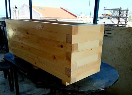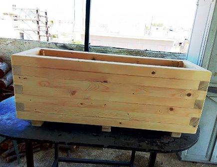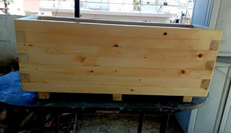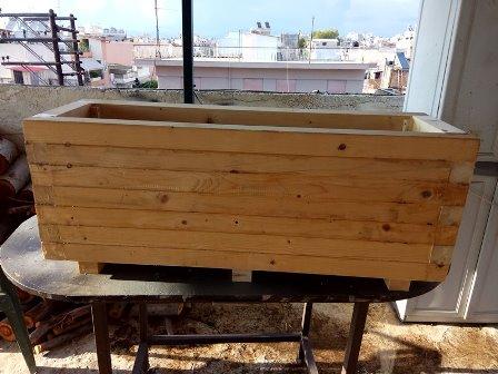 Ξύλινη ζαρντινιέρα για την βεράντα της αδερφής. Πριν φύγω για διακοπές έπρεπε να παραδώσω. Διαστάσεις: 1.000 * 350 *350. Με δύο πατώματα για να επιλέξει η παραλήπτρια. Τα θηριάκια της Bosch έκαναν θαύματα σε ότι & να τους ζητήθηκε. Έγινε στοκάρισμα με ξυλόστοκο σε απόχρωση πεύκου από το Praktiker & περάστηκε δύο χέρια βερνίκι άχρωμο σατινέ της Βιβεχρώμ. Ίσως αργότερα μπει & μια φωτο στην τελική της θέση με γεωύφασμα (ή γαιούφασμα), πέργκολα & φυτεμένη.