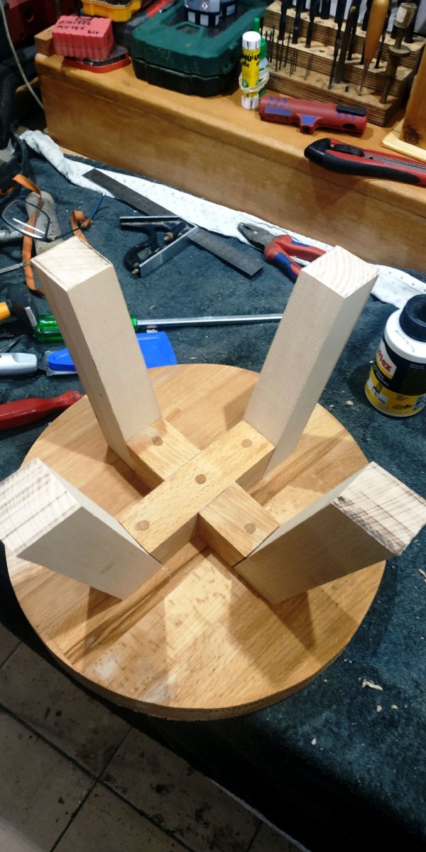 Καλημέρα από την Πάτρα. Συνθέτη ξυλεία οξυάς. Ποδαρικά 18 cm στις 15° με πάχος 4*4 cm. Κάθισμα με διάμετρο 32 cm & πάχος 4*4 cm.