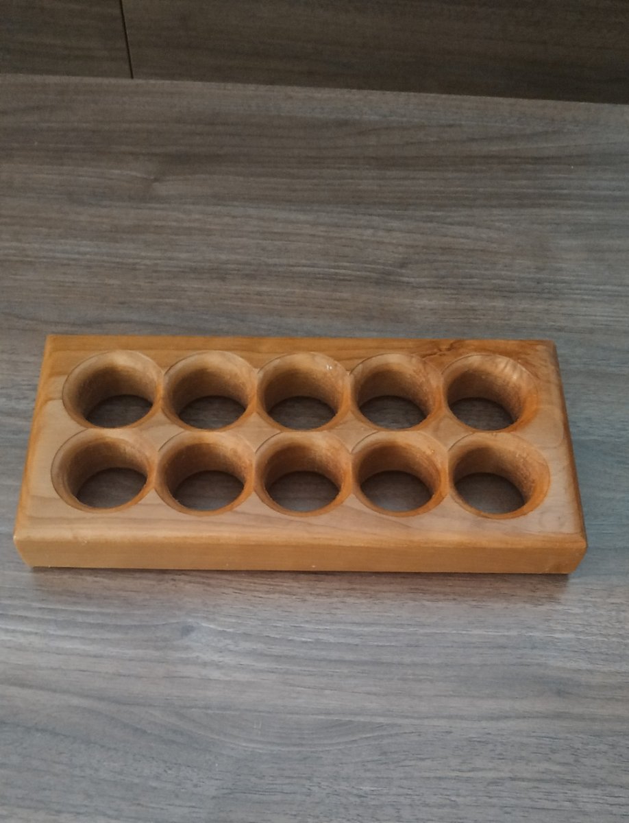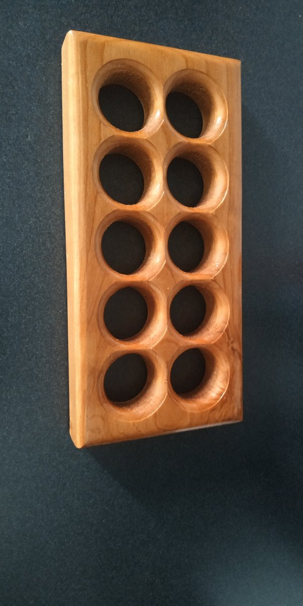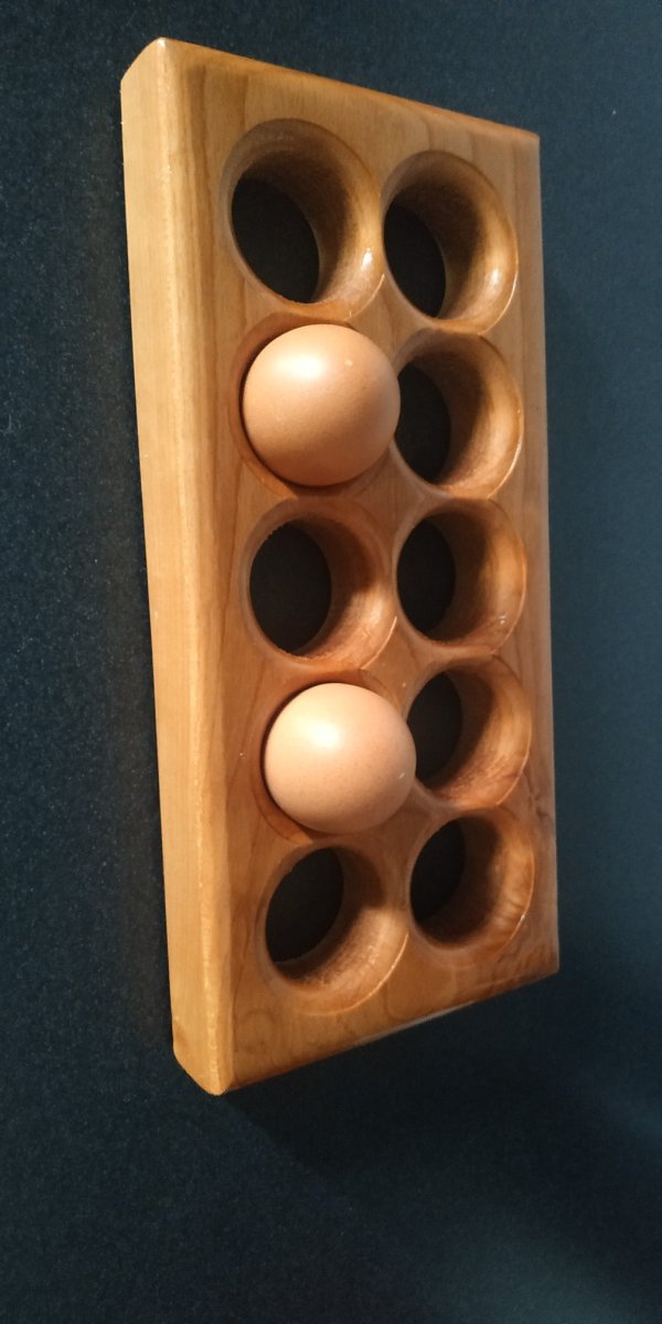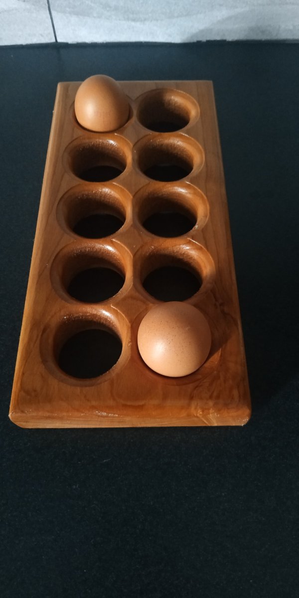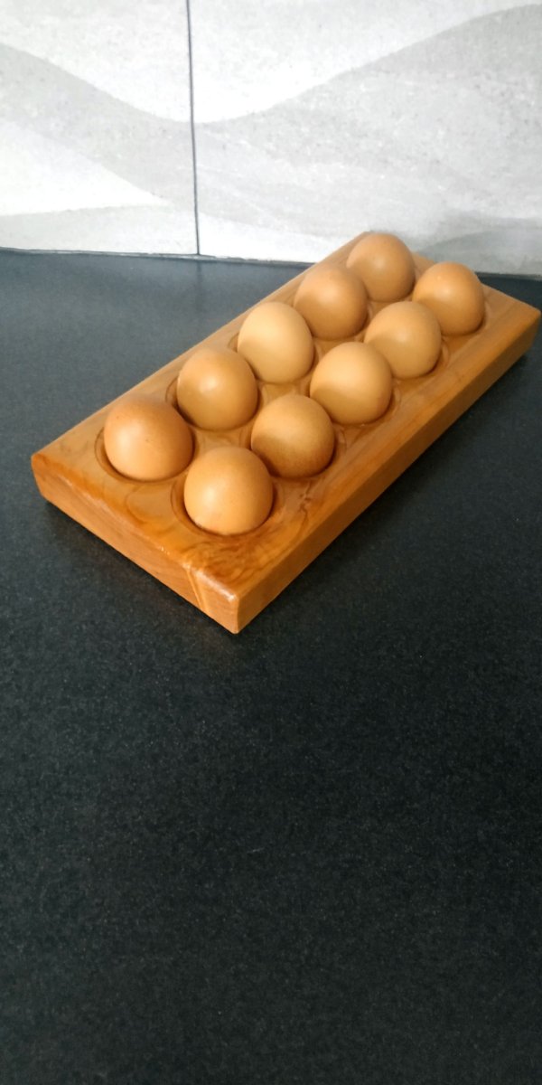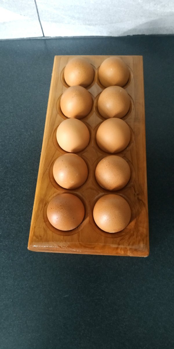 Καλό μεσημέρι. Αν & λίγο νωρίς, ετοιμάστηκε για να υπάρχει, ένα (red) eggs holder. Μήκος: 29 cm, Πλάτος: 14 cm, Πάχος: 3 cm. Κατά τύχη, το ξεχασμένο μεγάλο βάθος του κοπτικού στο ρούτερ, μας έδωσε & ......σχεδιάκια ρόμβου, ανάμεσα στις αυγοθήκες!