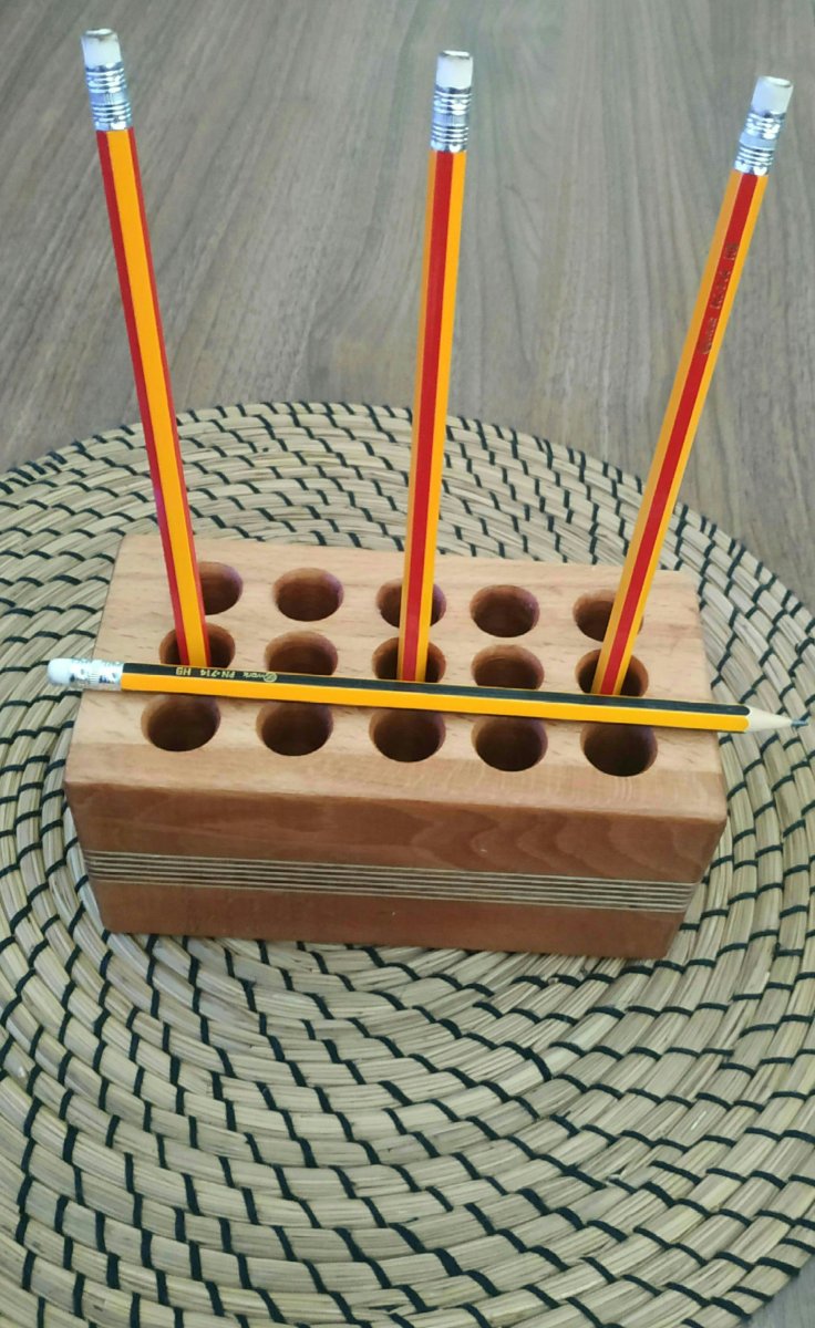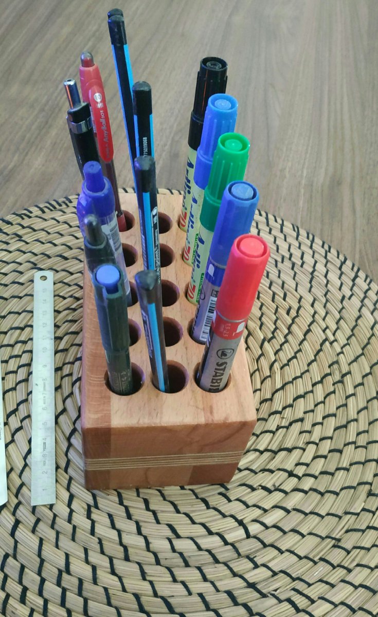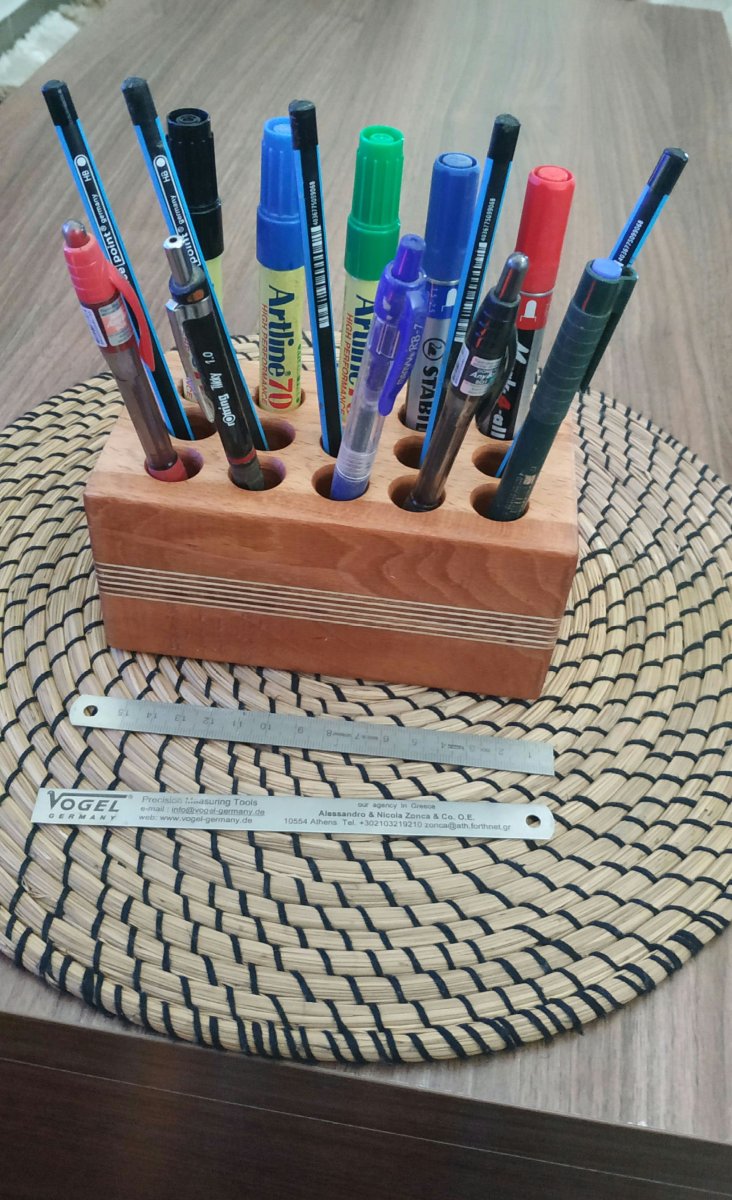 Καλημέρα από την Πάτρα. Μια όμορφη μολυβοθήκη για την μεγάλη εγγονή. & μερικές φωτογραφίες επιπλέον. Διαστάσεις: Μήκος: 16 cm Πλάτος: 8 cm Ύψος: 8 cm Κάθε τρύπα έχει διάμετρο 8φ & βάθος 5 cm.