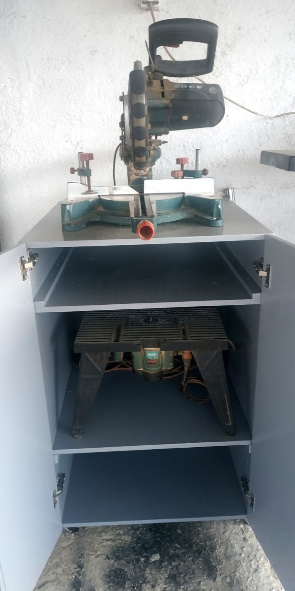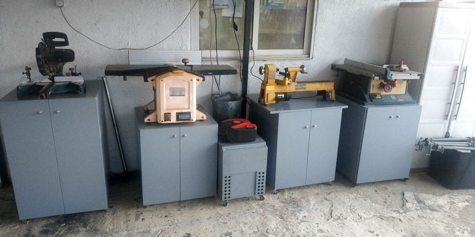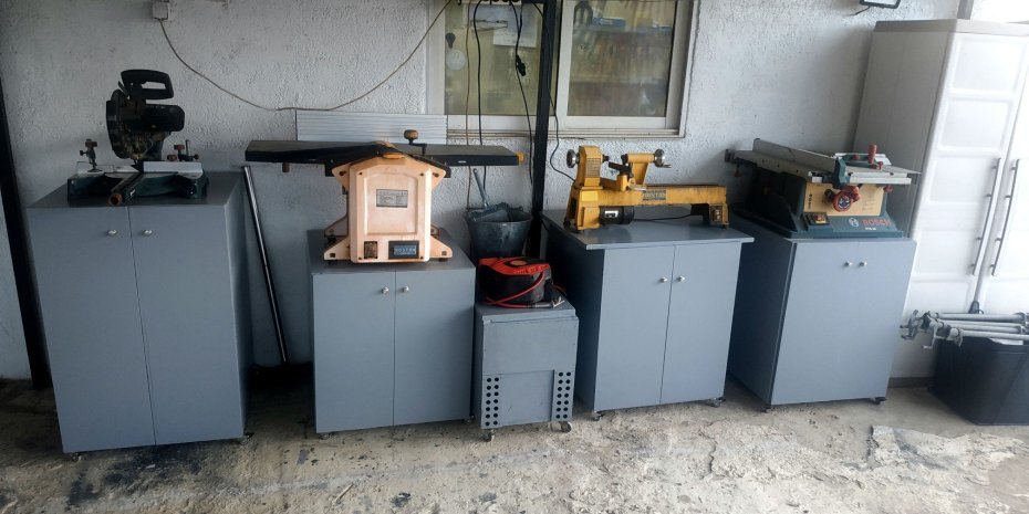 Μαστορέματα ημέρας δεν τα λες. Συμμάζεμα έξω μηχανημάτων. Το κάθε εργαλείο στο τραπέζι του & στο ύψος που με εξυπηρετεί. Ροδακια, πομολακια, χούφτες από παλιά ανακαίνιση. Σιγά, σιγά θα πλακοστρώσω & ίσως κλείσω ένα κομμάτι. Η διάταξη αυτή των μηχανημάτων με έχει βολέψει. Τραβάω έξω κάθε φορά ένα μηχάνημα δουλεύω & το γυρίζω στην θέση του. Μου πήρε χρόνο βέβαια. Τα κουτιά είναι από κόντρα πλακέ θαλάσσης 16 mm & περασμένα όλα δύο χέρια βελατούρα & δύο χέρια ρι(ε?)πουλινη.