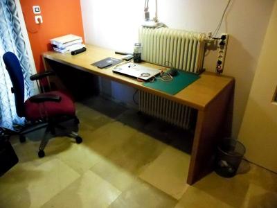 Γραφείο μεγάλο για τον φοιτητή μας. Μήκος: 200!!! cm, Ύψος: 75 cm, Βάθος: 65 cm, Πάχος Οξυάς: 4 cm. Με διπλή τραβέρσα από κάτω κ με δύο "κρυφά" τρίγωνα ενίσχυσης στο καπάκι με τα ποδαρικά, προς τον τοίχο.