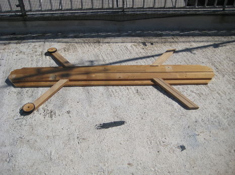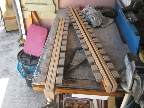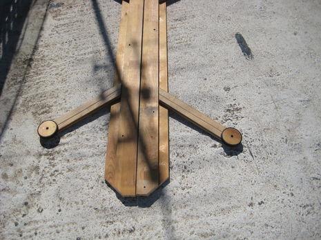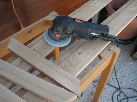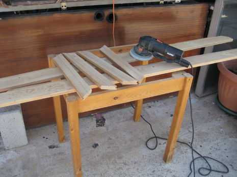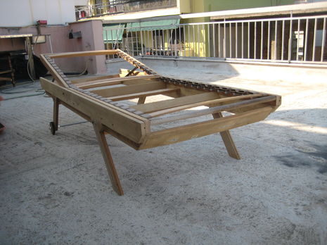 Μερος 2ο... ΜΕΤΡΗΜΑΤΑ....[κακος μου θανατος....οι παλιοι λεγαν 10 μετρα ,1 κοψε, εγω το κανα 2-3 μετρα, 2-3 κοψε.] Κοψιματα ,τρυπηματα, προχειρο μονταρισμα....[θα ξαναλυθει, θα μπει κ ξυλοκολλα, θα βαφτει κ οτι αλλο με φωτισει ο Θεουλης]... Μπηκαν ποδια , ενισχυσεις ,δεσιματα, ροδες με ντιζα.... Τα κομματια απ τις φαλτσοκοπες των ποδιων ,μπηκαν σαν ενισχυση στα ποδια... προχωρησε κ η ανακλιση.... Κουφιο ,μεταλλικο σωληνα, θα περαστει στη ντιζα ,στις ροδες να μην φαινεται κ εξτρα ακαμψια....[οτι μπορει να δωσει]... Εξωτερικα στις ροδες μπηκε ροδελα απο σκληρο δισκο...[ειπαμε, θα φτιαχτει μ οτι υπαρχει στο θησαυρο κ οτι ειχα μαζεψει...] Μπολικη σαβουρα απ τα κοψιματα... Κ ενα κομματι κε'ι'κ, μολις βγηκε απ την κουζινα ζεστο,ζεστο, μου κανε παρεα... Το στρωμα που θα βαλω, [υπαρχει ηδη απο καναπε] ειναι σκουρο γκρι.... 1. περναω την ξαπλωστρα,[οταν κ αμα τελειωσει]αχρωμο βερνικι?????????? 2.την περναω φλογιστρο κ μετα αχρωμο??????????? 3.Την περναω ενα 3v3 oak ρουστικ [αρκετα σκουρο καφε] που εχει ξεμεινει κ αυτο κ μετα ενα χερι λουστρο θαλασσης???????? Εχει 2 μερες δουλιτσα ακομα , απο κανα 3ωρο τη μερα, να μονταριστει σωστα, να μπουν κ τα μπρατσα κ να βαφτει... Στο επομενο ρεπο κ σ ενα απογευμα μετα τη δουλεια ,πιστευω θα τελειωσει...Μενουμε ταρατσα!!!!!!!!!!!!!