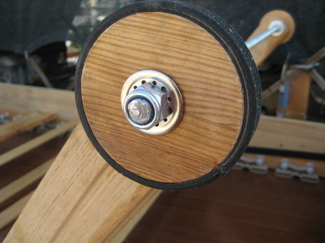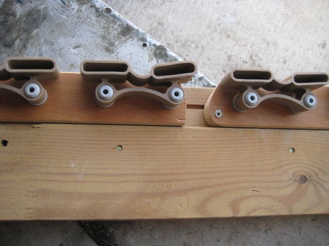 Το χειμωνα ειχαμε μαζεψει μπολικη πρωτη υλη απο πεταμενα κ αφου εφτιαξε καπως ο καιρος ειπα να κανω ενα ξεκινημα με τον πρωινο καφε σε κατασκευη ξαπλωστρας με μηδενικο κοστος υλικων.... Ξεκινημα με ροδες....παλιος ιμαντας απο μοτερ, σανιδα, κ ενα μεταλλικο σωληνακι απ το σωρο... Ετοιμες!!!!!!!!! Βενζινοκολλα ,κ εχτρα διχαλα στην ενωση... Μεχρι να κολλησουν σφιξιμο με 2 τροπους... 2 μπροστινα απο πεταμενο 2οροφο κρεββατι, 4 ρεταλια πατωματος... Μετρηματα ,[οτι χειροτερο για μενα, τα μετρηματα κ το διαβασμα οδηγιων σε εργαλεια!!!!!],φαλτσοκοπες κ πρωτες δοκιμες... Στις 45 μοιρες τα πλα'ι'να στις ακρες, στις 35 τα ποδια, που ισως κοντυνω λιγο , γιατι συνολο υψος βγηκε στους 45 ποντους...[ υπολογιζα 42 πανω κατω να μου βγει]... Κοπη κ διαμορφωση ....κ αυτο πεταμενο... Στα κομματια που θα γινεται ανακλιση περαστηκε κομματι απο σωληνακι γιατι θα τρωει το ζορι του.... Κ τα ταβλακια που θα καθετε το στρωμα ,περιμενουν κοπη στο πλατος του.... Αυτα προοριζονται για ''μπρατσα'' δεξια αριστερα.... Κοπηκαν ,τρυπηθηκαν κ θα βαφτουν , λαμακια χοντρα , για την ανακλιση... Τριφτηκαν αρπα κολλα με ... Αυτο!!![στο 1/3 του χρονου ,απ οτι με οποιοδηποτε αλλο.] Με smirdex 120, τσαλακωθηκε γιατι πηρα κ τις ακμες.... ΤΕΣΤΤΤΤΤΤΤΤΤΤΤΤΤΤ!!!!!!!!!!!!Ολα οκ.... Εδω φαινεται ο λογος της παρακεντρης τρυπας ....λογω εμποδιων !!!!!!!! Ακομα κ οι βιδες τζαμπα απο ξεμονταρισμα υλικων!!!!!!! ειπαμε, 0 κοστος σε υλικα...αν κ ροδες μπορουσα να βρω απο το σκραπατζιδικο ,αλλα καλο ειναι ν ακονιζουμε το μυαλο κ να βρισκουμε λυσεις. Κ ενα προχειρο σχεδιακι στο ξυλο για την ανακλιση...εχει δουλιτσα ακομα... Σκεφτηκα να το βαλω τελειωμενο, αλλα λογω του οτι ανοιγει ο καιρος ειπα να δωσω ιδεες σε καναν ανησυχο μαστορα!! 1,90 βγηκε στο μηκος...45 υψος [μαλλον θα κοντυνει 2-3 ποντους] κ πλατος 60 αν βαλω οτι υπαρχει απο στρωμα , η 70 αν'' χαλασω'' το μηδενικο προτζεκτ, κ παρω ενα 70 πλατος με κανα 20αρικο... Λιγα κοψιματα ακομα , ενα καλο βαψιμο , μονταρισμα με καβιλιες κ κρυφες βιδες ωστε να μην φαινεται τιποτα εξωτερικα ... Τυχον προτασεις κ ιδεες καλοδεχουμενες!