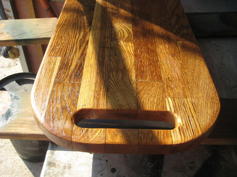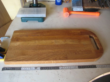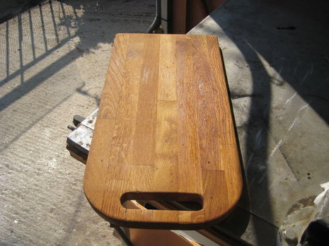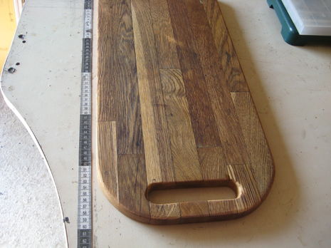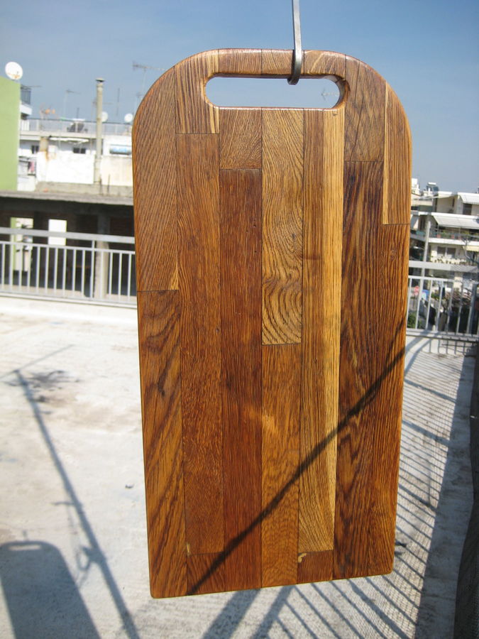 Πεταμενη -σπασμενη σκαλιτσα . Μπηκαν ενισχυσεις στα σκαλοπατια, το πολυ σπασμενο ''γεμιστηκε '' κ με κομματι προφιλ αλουμινιου , μπηκαν κ σανιδια στα σκαλοπατια κ ετοιμη για 2η καριερα... Δεν καθαριστηκε επιμελως, απλως τα χοντρα , γιατι θα ειναι βοηθος για βαψιματα κ τσιμεντοδουλειες.... Κ απο 2μισαρι ,μασιφ ρεταλι ,μαλλον, παγκου κουζινας μια μεγαλη [ 50x28 καθαρη επιφανεια + χερουλι] σανιδα κοπης για να δοκιμασω τη σεγα ....πλυθηκε καλα, τριφτηκε, ξαναπλυθηκε κ ξανατριφτηκε .... Περαστηκε με λαδι 2-3 χερια , με ενδιαμεσα τριψιματακια με 000 ατσαλομαλλο ... Κανονικα τα πρωτα χερια θελει αραιωμα με νεφτι αλλα το αποφυγα ... Με το φοσθνερακι ανοιξα τις ακρες απ το χερουλι κ τα υπολοιπα με σεγα....οι ακμες ''σπαστηκαν'' στο χερι , με ρουτερ θα ταν ποιο εντυπωσιακο ,αλλα χρονος λιγος κουραση πολυ... Παλι καλα που το 2ωρο του καφε προλαβα κ αυτα...