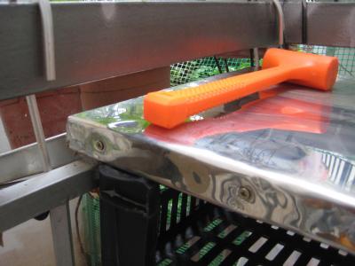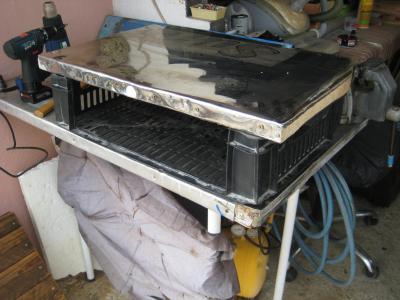 Ρεταλι παγκου κουζινας , 4 εκ. παχος [ τα καλα του να χεις 3-4 μαραγκουδικα κ επιπλα κουζινας τριγυρω κ να βγαζουν ρεταλια για πεταμα] κ ανοξειδωτη λαμαρινα απο καζανι ηλιακου... Πιασιμο με σφικτηρες ,να κρατανε πατημενη τη λαμαρινα, κ κοπανημα να γωνιασει.... Βιδωμα με αυτοδιατρητες βιδες,[ αλλοιως προτρυπημα στο μεταλλικο μερος] κ παντα αφηνουμε παραπανω λαμαρινα , να διπλωσει κ απο το κατω μερος , για αποφυγη ατυχηματων , κοψιματων κ τ λ .... Ετοιμο , θα τοποθετηθει ταρατσα σε χωρο που δε θα ναι στεγασμενος, αλλα καλα αεριζομενος για να γινονται εκει τριψιματα κ αλλες ''βρωμικες'' δουλειες κ γι αυτο εγινε ετσι ολη η κατασκευη.... Διαστασεις 48 χ 82... Αφου ειχαμε τα εργαλεια ηδη εξω ,με αλλο ρεταλι που μετρηθηκε κ κοπηκε φτιαχτηκε κ 2ο για το μπαλκονακι της κουζινας , που κ αυτο θα αντιμετωπιζει τα στοιχεια της φυσης! Κλουβακι απ το μαναβικο , κοπηκε η μπροστα πλευρα....[ θα το προτιμουσα λιγο μικροτερο] Στερεωθηκε κατω απ τον παγκο εν ειδη ραφιου...... Ευτυχως εκατσε ακριβως με την πρωτη , ειχα προνοησει να κανω κ κοψιμο εκει που θα βαζα γωνια στηριξης.... Επισης αν δεν εχετε πολυ μακρυα κ στραβη προεκταση για μυτες κ δεν φτανει αυτη που εχετε , κ ταυτοχρονα βαριεστε να ψαχνετε τη γωνιακη, βαλτε αλλη μια μπροστα να κανετε τη δουλεια σας!!!!!!!!!!! Ηδη μπηκαν απο κατω τα αγαπημενα μου, βατικιωτικα κρεμμυδια κ φρεσκα σκορδα Μανης! Κ αφου πετυχα στο θησαυρο ενα ωραιο γαντζακι ,μπηκε στο κοφλερ για να κραταει το νεο 4μετρο καλωδιο... Επειδη μ αρεσει η ησυχια μπηκε απο πισω παχια ταινια 2πλης οψης να αποφευγουμε τους θορυβωδεις συντονισμους.... Αυτα προλαβα το μοναδικο μου ελευθερο απογευμα εδω κ πολυ καιρο....- 2.882 απαντήσεις