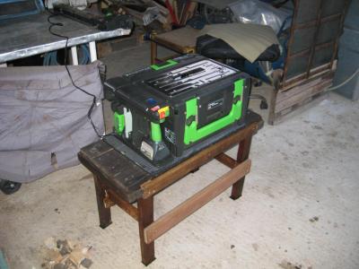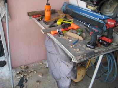 Παλιο ξυλινο κασελι...καθαριστηκε ,βαφτηκε , μπηκαν ροδακια.... Αλυσιδακι για να το κραταει ανοιχτο κ κοπηκε κομματι απο φυλλο αλουμινιου ,2.5 χιλ. , για τον πατο... Θα κατεβει αυλη κ θα μπουν μεσα ολα τα κηπουρικα εργαλεια , γιατι σημερα που εφτιαχνα τον κηπο ανεβοκατεβαινα.... Επισης απο παλια ζωνη μπηκαν χερουλια! Απο τη σαβουρα της ξυλειας [ οτι να ναι!] κ κομματι παλιας παλετας φτιαχτηκε αρπα κολα μινι παγκος για το πολυμηχανημα cel 8... Oπου ειχα λιγο αξιοπρεπες παχος στα δοκαρακια εγιναν κοψιματα για να φωλιασουν τα ποδια , κ δεσιματα, τα υπολοιπα οτι να ναι αναγκαστικα ,λογω ελλειψης πρωτης υλης!!!!! Μπηκε πανω αντιολισθητικο πλαστικο κ περαστηκε με λαδι γιατι θα ναι μονιμως εξω.... Μπηκε πανω το πολυμηχανημα [μην το παρει καποιος αν εχει μετριες κ πανω απαιτησεις, δεν αξιζει τον κοπο, δεν εχει δυναμη] κ κοπηκε ρεταλι στις διαστασεις που χρειαζομουν... Συνδεθηκε κ με μια παλια σκουπα που ηταν προχειρη κ γλυτωσαμε αρκετη σκονη κ πριονιδι... Κοπηκε παχυ αφρολεξ κ με το ρεταλι δερματινης ξεκινησε ενα μαξιλαρι για σκαμνακι.... Αφου τεντωσουμε καλα τη δερματινη , αρχιζουμε να καρφωνουμε, τα περισσευματα απ τις γωνιες τα κοβω μ αυτο τον τροπο, γυριζω κ καρφωνω.... Αν εχει χρονο φιλος ταπετσερης θα φωτογραφισω κ θα δειξω τη σωστη διαδικασια να χουμε ενα μπουσουλα κ σεις κ γω. Το σκαμνι που βρεθηκε πεταμενο ειναι σε φαση μονταρισματος με ξυλοκολλα, αλλα η δοκιμη εγινε κ ειχε επιτυχια! κ ενα γτηγορο χερουλι απο ρεταλι σε παλιο σκαλιστηρι.... δεν πεταμε τιποτα!!!!!!!!!!! Ενας μικρος χαμος εγινε βεβαια..... Σκαρπελο -ρασπα ΝΙΚΟΛΣΟΝ vs σκαρπελο , καλο μεν , αλλα χιλιοταλαιπορημενο κ οχι σωστα τροχισμενο....το παλιο ξυριζε σε χρονο 0 , το αλλο δεν.... Επισης μια μεζουρα κολληθηκε σε παγκο που δεν γινονται βαριες δουλειες κ καρφωθηκε εξτρα με συραπτικο.... πολυ χρησιμη για γρηγορες μετρησεις κ σημαδεματα.