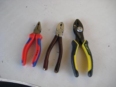 Πενσες...Εκτος απο διαφορες του κιλου που ολοι εχουμε ας δουμε 3 επωνυμες.Αριστερα η 16αρα knipex, βολικη κ με καλη λαβη για μικροδουλεις, στη μεση μια facom no187, ισως πανω απο 30 χρονων!18cm η ποιο βολικη για μενα,τη χρησιμοποιω στο 90% των εργασιων που χρειαζετε πενσα.Καιρος να ξεκουραστει,θα δωθει σε φιλικο καταστημα facom για να μπει σε εκθετηριο με παλια εργαλεια κ θα αντικατασταθει με νεα...Θα μου λειψει αλλα θα ξερω οτι ειναι σε καλα χερια!Για το τελος μια fat max που ρυθμιζετε σε 3 θεσεις ανοιγματος, 20cm. Πολυ καλη ως ιδεα πολυ αβολη ,βαρια κ δυσχρηστη στην πραξη!!!!!!!!! Αποφυγετε τη,ελπιζω να μου χρειαστει καποτε να μην πανε χαμενα τα 12e! -