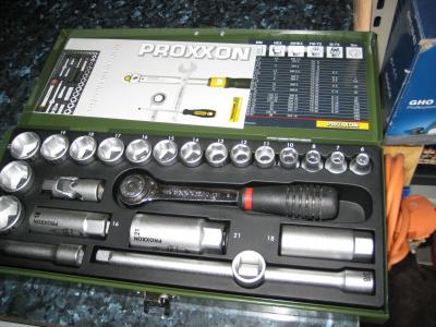 Και μια αναβαθμιση στο σετ 3/8 της proxxon...Bγαζουμε την καστανια της κ βαζουμε μια facom! Oι διαφορες μεταξυ τους μεγαλες,στο βαρος,στο ζυγισμα στη λαβη αλλα ποιο πολυ στη λειτουργια της καστανιας.Πολυ ποιο γλυκο δουλεμα που το ακους κ το νοιωθεις,λιγοτερες μοιρες ανα κλικ κ ποιο καλο κλειδωμα στο καρυδακι! -