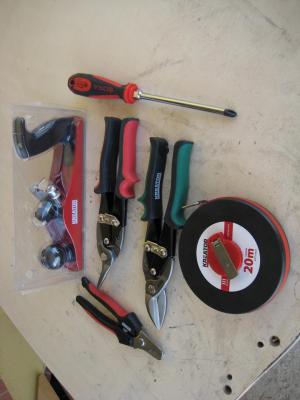 16. Τελευταια επιδρομη στο ξεστοκαρισμα. Ψαλιδια λαμαρινας,δεξι,αριστερο. Παρ ελπιδα κοβουν παρα πολυ καλα,καλυτερα απο ενα UNIOR που εχω! Μεσαια πλανη ,δοκιμαστηκε,συμπαθητικη αλλα σιγουρα θελει τροχισμα το μαχαιρι της... Απο 5 ευρω το καθενα! Μια 20μετρη μετροταινια ,[μεχρι 5μ ειχα] ενα κατσαβιδι νο3 κ ενα κοφτακι καλωδιων μικρο κ πρακτικο. Κοβει αρκετα καλα σε οτι καλωδιο δοκιμαστηκε...3 ευρω το καθενα
