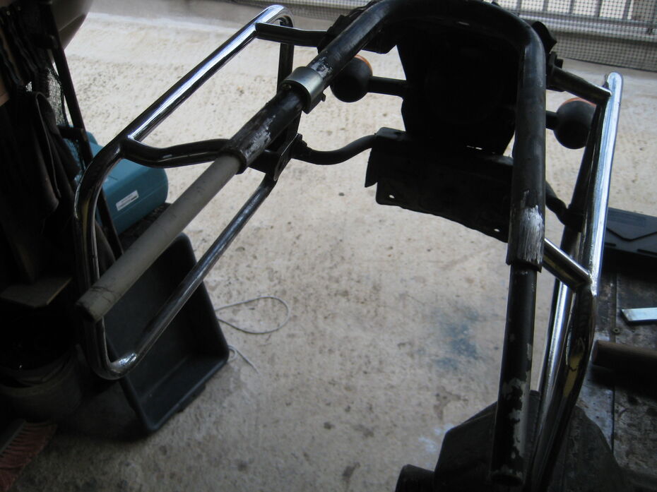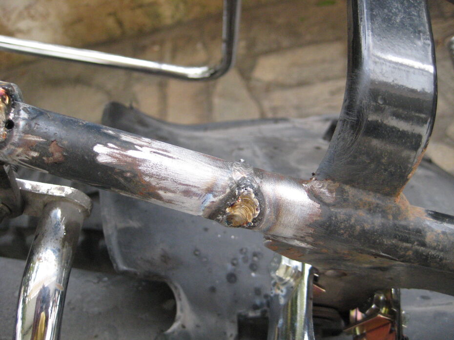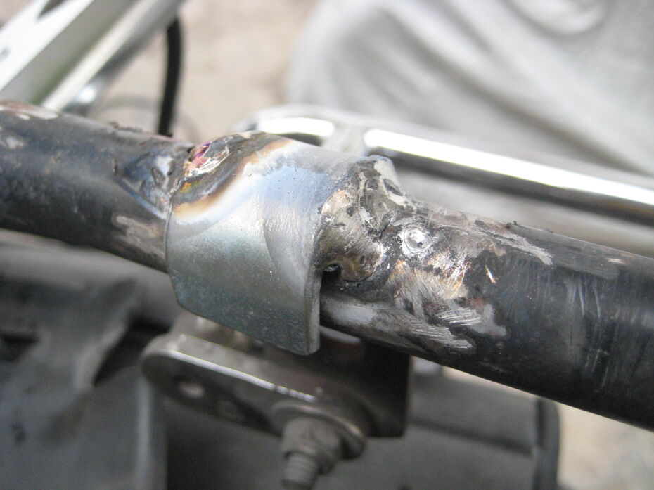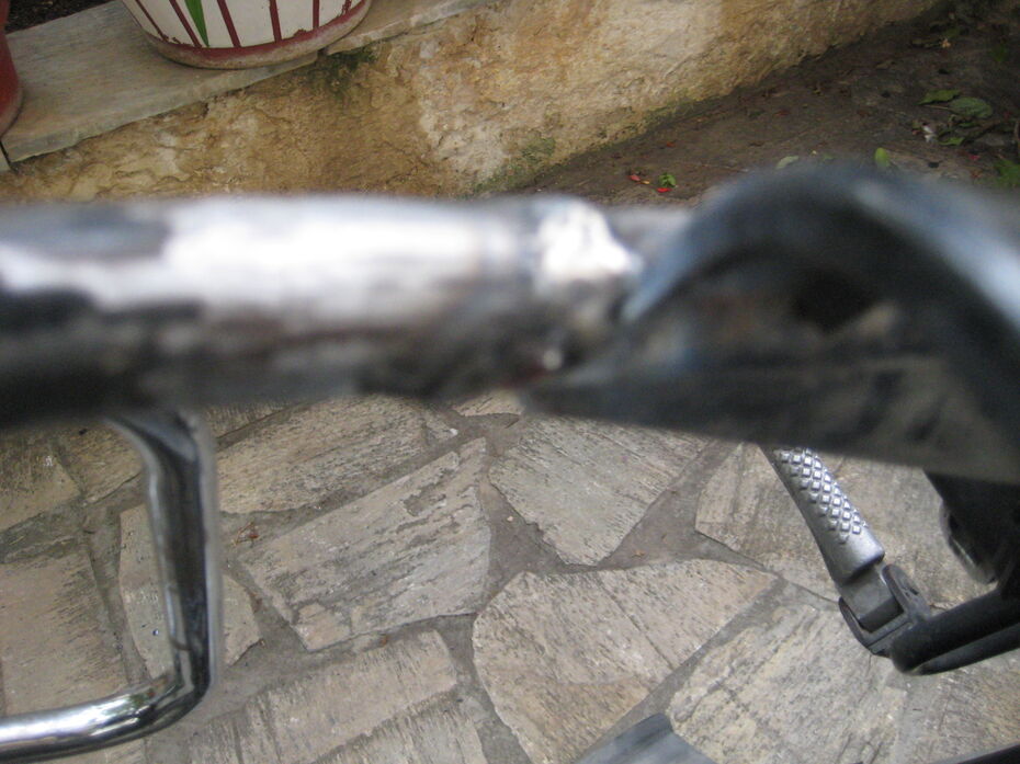 Η μικρη εχει τραβηξει τα πανδεινα στα χερια μου... Οριο φορτωσεις στη σχαρα εχει τα 3 κιλα...τα 10-20 ειναι συνηθες φαινομενο, καποιες φορες εχει μεχρι κ 50-60. Τι ποιο λογικο μετα τα τελευταια φορτια το πισω μερος του υποπλαισιου να κοψει 1 1/2 σωληνα απο τους 2.... Ξηλωμα , κοψιμο κ του μισου σωληνα που κραταγε , ταρατσα κ επισκευη μ οτι υπαρχει... Σωληνα μες το σωληνα κ γεμισμα μεσα με αλλο μασιφ σιδερο στρογγυλο.... δεν καλοφαινεται... Κ μια κομμενη βαση σχαρας, φτιαχτηκε νεα που αγκαλιαζει το σωληνα του υποπλαισιου , για σιγουρια.... Οι ενισχυσεις μπηκαν 15 ποντους σε καθε μερια... Επ ευκαιρια ,τριψιμο, ασταρωμα, τριψιμο κ 2 χερια βαψιμο στο πισω φτερο... Μεχρι να στεγνωσει το καθε χερι , τριψιμο στα σημεια που θα γινονταν οι κολλησεις... Κοπανημα με ματσολα να μπουν στους μπροστα σωληνες, κ οι πρωτες μου κολλησεις με το εργαλειο που χω καμμια 5ετια κ τωρα ξεσφραγισα... Ηλεκτροδια κατι ληγμενα φυγαν κλωτσιες , αλλα ειχα παρει καμμια 10αρια για ινοξ απο το σκραπατζιδικο που κενταγανε!!!!! εξ ου κ το χρυσαφι χρωμα στις κολλησεις. Κοπαναγα κ με το σφυρακι να πεφτουν τα ξερα κ κατι ψιλες που φευγαν , κ συρματοβουρτσα μετα...δεν πηγε κ ασχημα... βαψιμο μετα ,[ασταρι - χρωμα ] κ μονταρισμα... ΣΗΜΑΝΤΙΚΟ!!!!!!!!!ΔΕΝ ΞΕΚΙΝΑΜΕ ΠΟΤΕΕΕΕ ΚΟΛΛΗΜΑ ΑΝ ΔΕΝ ΕΧΟΥΜΕ ΑΠΟΣΥΝΔΕΣΕΙ ΜΠΑΤΑΡΙΑ Κ ΝΑ ΞΕΚΟΥΜΠΩΣΟΥΜΕ ΤΗΝ ΗΛΕΚΤΡΟΝΙΚΗ!!!!! Το εργαλειο [ με τη μασκα δωρο] κανα 120 αρι πριν πολλα χρονια.... Στο 60 -70 το δουλεψα , καλα πηγαινε για πρωτη μου φορα κ δεν μου τρυπησε σιδερο....