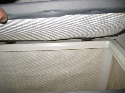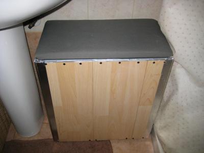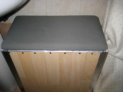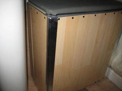 Παλιο καλαθι για απλυτα που ο γατος το ειχε κανει αισχρο μπροστα με τα νυχια...Παρατημενα περισσευματα απο πατωμα ,ρεταλι απο υφασμα που ειχα αλλαξει στις καρεκλες,κ λιγη αλουμινοταινια για τις γωνιες,επειδη λογω χρονου δεν προλαβαινα να τις φερω στις 45μοιρες κ ετοιμο ξανα το καλαθι! Χρονος 30 λεπτα,κοστος,0...