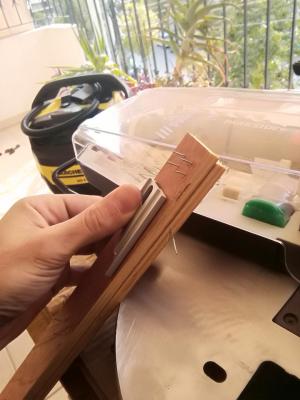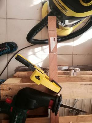 Αποφασισα να κανω εργαλειο το φαλτσοπριονο απο το lidl της περασμενης βδομαδας με βαση 2-3 οδηγους στο youtube. Ας ξεκινησουμε απο τα προβληματα, τα οποια για μενα που θα ηθελα μεγαλη ακριβεια οσο γινεται, ειναι πολλα και μεγαλα. Αρχικα η βαση ειναι ασ'τα να πανε. Η λυση ειναι ισιο σκληρο ξυλο και γυαλοχαρτο. Στη συνεχεια ο φραχτης μπροστα. Δεν ειναι ολοισιος αλλα καμια σχεση με τη βαση. Το μεγαλυτερο προβλημα του ομως ειναι το εξαρτηματακι που ειναι θεοστραβο. Εχει μεγαλη διαφορα στο παχος που φαινεται. Η λυση ειναι ενα κομματακι κοντρα πλακε θαλασσης που ειχα μαζεψει και καποια στιγμη ηξερα οτι θα μου φαινοταν χρησιμο. Dremelοειδες, σπαθοσεγα και φυγαμε να το κανουμε ιδιο και καλυτερο. Τη βλακεια μου την εκανα βεβαια και εκει που τα πηγαινα μια χαρα, ανοιξα την πατουρα για τη βιδα που το συγκρατει απο την πισω μερια. Ξενερωμα λοιπον και παλι απο την αρχη οταν ξεθολωσει λιγο το μυαλο και φυγουν τα νευρα. To be continued...