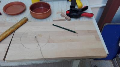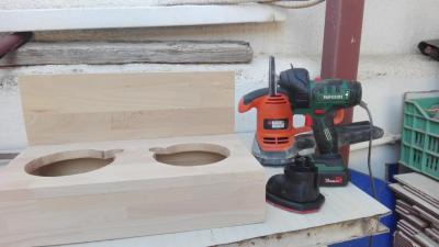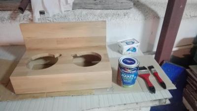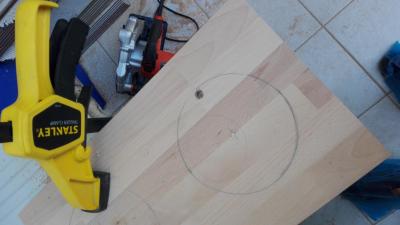 Project Simba: Ξυλινη κατασκευη με δυο τρυπες στις οποιες θα μπαινουν 2 μπωλ για φαγητο και νερο για ενα πομερανιαν φιλων. Αγοραστηκαν 2 μπoλακια με μια σχετικη διακοσμηση. Τα ξυλα που επιλεχτηκαν ηταν οξυα (120χ20χ1.8cm και 80x20x1.8cm). Εψαξα σε μερικες αποθηκες ξυλειας αλλα δε βρηκα κατι λεπτο η ομορφο οπως αυτο, δυστυχως. Και τα 1.8 εκατοστα παχος πολυ μου ειναι, αλλα αν και βιαστικα γιατι ειχα μονο μια μερα για ολα τα ψωνια μου, δε βρηκα κατι καλυτερο. Τα ξυλα κοπηκαν με βαση το σχεδιο με το δισκοπριονο χερος μου για πρωτη φορα σχετικα ισια με τη βοηθεια της προχειρης αλλα πολυ χρησιμης κατασκευης με δυο ρεταλια που ειχανε μεινει απο τον παππου στο σπιτι. Ακουμπωντας το δισκοπριονο στο πλαι του υπερυψωμενου ξυλου, ο δισκος κοβει ακριβως στην ακρη του κατω ξυλου (για λιγο δε μου εφτασε το ξυλο και για την μεγαλη μερια και για τη μικρη). Clopyright απο διαφορα που εχω δει, σε 2 λεπτακια ηταν ετοιμο. Το ξυλο αν και αισθητα πιο σκληρο απο αλλα που εχω δουλεψει μεχρι τωρα κοπηκε απροβληματιστα. Σε καποια σημεια μονο οπως αχνοφαινεται και στη φωτογραφια αρπαξε λιγο και μαυρισε. Εδω θα ηθελα λιγη βοηθεια απο καποιον πιο εμπειρο, πιο πολυ πληροφοριακα: Εκανα εγω καποιο λαθος ή κατι στραβα, ή μηπως ειναι φυσιολογικο με τα σκληρα ξυλα? Επομενο βημα ηταν να κοπουν οι δυο κυκλοι. Μετα απο ψαξιμο για καποιο κουτι, πιατο, κουβαδακι, αποφασισα να χρησιμοποιησω το παλιο κολπο του καρφιου, σπαγγου και μολυβιου. Στη συνεχεια, τρυπημα με τρυπανακι για να χωρεσει η σεγα και καπου εκει αρχισαν να πανε ολα στραβα. Οι κυκλοι βγηκαν θεοστραβοι, η λαμα της σεγας και το ξυλο αρπαξαν πολυ, και γενικα το χειροτερο κομματι ολης της διαδικασιας (που θα με "αναγκασει" αλλο που δε θελω, να κανω τον επομενο μισθο ρουτερακι). Ημουν γενικα ηρεμος γιατι σκεφτομουν οτι θα τα φτιαξω ολα τελεια με το τριβειο, αλλα το τριβειο δεν ηθελε να μου κανει τη χαρη φυσικα αφου δε χωρουσε ουτε εδινε χερι για να το διορθωσω εσωτερικα. Τελικα βρηκα ενα πλαστη στο σουπερμαρκετ, γυρω στα 2 ευρω, και σκεφτηκα να του βαλω μια βιδα στην ακρη, ενα γυαλοχαρτο γυρω γυρω και να το βαλω στο δραπανο. Το ταλεντο μου φυσικα ανυπαρχτο και αν και χρησιμοποιησα το καινουριο εργαλειακι της wolfcraft για ισια τρυπηματα, κατι δεν πηγε καλα και βγηκε στραβο. Οποιος δεν εχει μυαλο εχει χερια, οποτε ο πιαστης δουλευτηκε χειροκινητα, με ικανοποιητικα αποτελεσματα. Καπου στο ενδιαμεσο αποφασισα να ανοιξω και δυο τρυπες με ποτηροτρυπανο για να μπορουν να βγαινουν ευκολα και τα μπολακια. Ηθελα να παιξω και με τα καινουρια μου παιχνιδια, οποτε ο τροπος συνδεσης ηταν οι καβιλιες. Τρυπες με την καβιλιερα wolfcraft και οι γωνιες συγκρατηθηκαν με τη μεγγενη γωνιων. Δυστυχως και εδω κατι πηγε στραβα, και η γωνιες δεν ηταν 90 μοιρες. Πριν μπει το καπακι, το πλαισιο ισιωθηκε με το τριβειο. Αγορασα μερικους αθλιους σφιγκτηρες της kreator απο τοπικο μαγαζι (οι πιο μεγαλοι απο τους μικρους, δε θυμαμαι ακριβως διαστασεις, 3.40 εκαστος) και μπηκε το καπακι. Ενω η εφαρμογη στα πλαγια ηταν καλη, το καπακι δεν εκατσε καλα. Αναγκαστηκα να στοκαρω με ξυλοστοκο τα κενα, αλλα τελικα το αποτελεσμα με αφησε πολυ ευχαριστημενο. Φυσικα μετα απο πολυ τριψιμο ετσι ωστε να ερθουν ισια ολες οι ενωσεις.. Εκει βοηθησε το νεο αποκτημα, το δραπανοκατσαβιδο/τριβειο/σπαθοσεγα/πολυεργαλειο απο το lidl. Το τριβειο του πολυεργαλειου καταφερει να ερθει συριζα με την πλατη και εδωσε πολυ ομορφο αποτελεσμα στο 