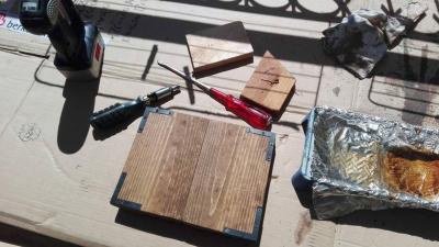 Σας ευχαριστω ολους για τις συμβουλες και για τα καλα λογια Ξεκινησα πειραματισμους με μια μικρη ταμπελιτσα στην οποια θα ζωγραφισει το ετερον ημισυ κατι του στυλ "προσοχη σκυλος" για να μπει σε μια αυλοπορτα που ελπιζω οτι θα φτιαξω. Αν και σε ενα ρεταλι που εκανα δοκιμες με το βερνικι δε μου αρεσε καθολου και ημουν ετοιμος να αγορασω αλλο, το τελικο αποτελεσμα μου αρεσει (ειναι στον ηλιο η φωτο και φαινεται πιο φωτεινο απ'οτι ειναι).