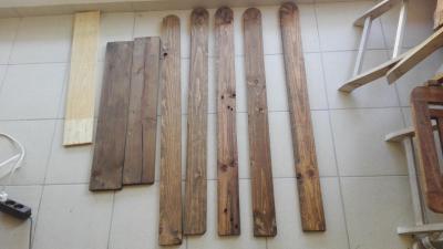 Ανεβαζετε κατι αριστουργηματα εδω μεσα και πραγματικα ντρεπομαι να ανεβαζω τα δικα μου τερατουργηματα. Δεν πτοουμαι ομως γιατι διασκεδαζω παρα πολυ να μαστροχαλαω και να δημιουργω! Η πρωτη φαση της πορτας για το σπιτι στο "χωριο" (σχεδον) τελειωσε με μεγαλυτερη επιτυχια απ'οτι περιμενα. Το σχεδιο εγινε Ξεκινησα να τριβω τα ξυλα (Πριν και μετα σε διαφορετικα ξυλα) Ευτυχως το καινουριο τριβειο καθισε υπεροχα στον παγκο εργασιας (aka το τραπεζι στη βεραντα, μην το πειτε στη μητερα μου) και με διευκολυνε αφανταστα για να κανω τις γωνιες και τις ακμες λιγο πιο γλυκες Βεβαια κατα τη διαρκεια του εργου διαβασα εδω οτι θελω και ενα διαγωνιο ξυλο για να μην αρχισει να κρεμαει η πορτα, οποτε τα σχεδια αλλαξαν λιγο Και ιδου το σχεδον τελειωμενο αποτελεσμα, ετοιμο για συναρμολογηση και οταν βρω χρονο ετοιομασω και το που θα μπουν οι μεντεσεδες. Τα ξυλα περαστηκαν με βερνικι σκουρας καρυδιας. Μου ταιριαξε παρα πολυ στο ματι με ο,τι μαυρη σατινε μεταλλικη επιφανεια ετοιμασω με το αντιστοιχο σπρευ. Το τελευταιο ξυλο που δεν ειναι ετοιμο ειναι το διαγωνιο, αλλα μπηκε αργα στα σχεδια και επρεπε να συγυρισω το εργαστηριο (Aka βεραντα) και θα πρεπει να αναβληθει για αλλη στιγμη η προετοιμασια του.