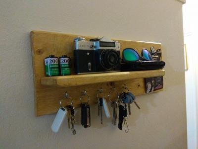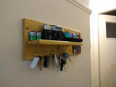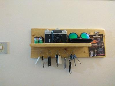 Καλήσπέρα πρώτο pholo log της χρονιάς αλλά και το πρώτο δικό μου. Συνήθως είμαι λίγο ξεχασιάρης και χάνω κλειδιά πορτοφολια και δεν ξέρω που τα άφησα τη τελευταία φορά. Αποφάσισα έτσι να φτιάξω ένα rack για να μήν τα χάνω. Είδα αρκετά βιντεάκια στο ίντερνετ με τα πιό ωραία: αυτό και αυτό. Είχα μερικά ξύλα στο εργαστήρι και είπα να δοκιμάσω καμιά κατασκευή. Αρχικά έκοψα δύο κομμάτια στο μέγεθος που ήθελα (50εκατοστά) και τα ένωσα μεταξύ τους με απλή κόλα. Δεν θα υπάρχει μεγάλη κάθετη δύναμη οπότε είπα να μήν βάλω καβίλιες. Το θέμα με την αποθηκούλα μου έιναι ότι η απουσία εργαλείων με δυσκολεύει πολλές φορες. Τα ξύλα κόπηκαν σε ένα τραπεζο-σεγο αλλά λόγω της απουσίας του κομματιου που κρατάει τη λάμα σε ευθεία γραμμή, τα κοψίματα ήταν άλλα ντάλων . Το ραφάκι που ήθελα θα το στερέωνα με καβίλιες οπότε και έγιναν οι τρύπες . Στίς φώτο θα δείτε και τα κοψίματα που είναι για τα πανιγύρια... Το αποτέλεσμα όμως δεν μου άρεσε. Οπότε ξανά λύσιμο, για να το δώσουμε ένα πιό "ταλαιπωρημένο" Look. Πλάνη χειρός στις άκρες αλλά και πέρασμα με γιαλύχαρτο όλης της επιφάνειας αλλά και με τον ταινιολειαντήρα του λιντλ. Διόρθωσα έτσι τα λάθξ που έκανα προηγουμένος αλλά και έφερα τις γωνίες σε ένα σημείο που να μου αρέσει. Πέρασμα πρώτου χεριού βερνίκι και μετά τρίψιμο πάλι με γυαλόχαρτο, δέυτερο χερι και βουαλά: Εδώ με έτρωγε το ερώτημα αν ήταν καλύτερο να βάλω πιαστράκια ή μαγνήτες στο κάτω μέρος του ξύλου. Μετά δεν ήμουν σίγουρος σε ποιά πλευρά έπρεπε να μπουν. Αποφάσισα ότι τα πιαστράκια ήταν η καλύτερη λύση και οτι με 5 ήμουν ευχαριστημένος. Αφού τα άνοιξα με μία πένσα έκανα τρύπες με τρυπάνι 1 χιλιοστού, ίσα ίσα για να έχουν κάπου να βηδώσουν. Το τελικό αποτέλεσμα ήταν αυτό: Επίπεδο δυσκολίας : Εύκολο Ωρές: Γίνεται και σε μία μέρα (μαζι με το στέγνωμα) μου πήρε 2-3 γιατί έκανα από λίγο κάθε μέρα.- 2.882 απαντήσεις