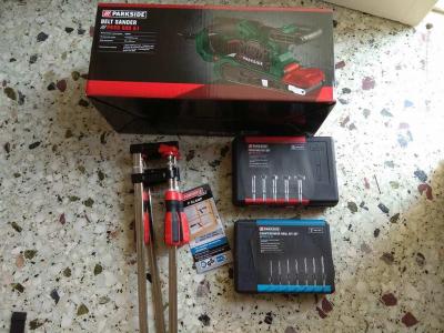 Καλησπέρα και από μένα, με μία πρωινή επισκεψη στο γερμανικο κατάστημα με τις προσφορες (κοινως Lidl αλλα ειπα να δημιουργησω σασπενς) χτυπησα αυτα τα παρακάτω πραγματάκια: 3 Σφιγκτήρες , τρυπάνια ξύλου-Forstner και τρυπάνια φρέζας. Αρχικά δοκίμασα τα τρυπάνια φρέζας, σε μια "βαση"¨που συναρμολογησα για να ελεγξω και τους σφιγκτηρες. Οι σφιγκτηρες (8e) εχουν ωραία λαβη,που σου δίνει καλό γκριπ,και το άνοιγμα του με ικανοποιεί, απο οσο δοκίμασα μπορώ να τα εμπιστευτώ για τις μικρο δουλειές μου οπότε πήραν θέση στο πάγκο.Δοκίμασα να πατήσω στην άλλη πλευρά απο το ξύλο που κραταγε και εστω και στιγμιαία (1s-2s) με κράτησε. Επιστέφουμε στα τρυπάνια (4,5e) λοιπόν τα οποία μου άφησαν θετική εντύπωση,αλλά θετική για τα λεφτά τους.Ηρεμο και ανετο τρύπημα χωρις κάτι αξιοσημειωτο.Η ποιοτητα φαίνεται οκ, και μιας και μου έλειπε από τη συλλογή μου, ηταν must. Το αλενακι που εχει μέσα ήταν ευχάριστη εκπληξη για να μη ψάχνεις τελευταια στιγμη, αλλά φυσικά αισθανεσαι οτι θα σ μεινει στο χερι μολις σφιξεις κάτι. Πήρα επίσης και τα τρυπάνια ξύλου-Forstner. Αυτά μου άρεσαν σε γενικές γραμμές,βέβαια οταν τρύπησα το παλετάκι στη πίσω πλευρα έσκισε λίγο τις φλούδες, αλλά ισως ήταν και απλά το χέρι μου που το πιεσε παραπάνω.(edit: ηταν δικό μου λάθος) Τελευταίος αλλά σιγουρα όχι ο πιό ασήμαντος(μάλλον ο λόγος που πηγα στο κατάστημα),ο ταινιολειαντήρας που είχε σε προσφορά στα 35ε. Εχω στη κατοχή μου ένα φτήνο παλμικό τριβειο της τάξης των 15-20 ευρω απο τα πράκτικερ το οποίο βγήκε άχρηστο και δυσχρηστο τελείως,οπότε μόλις το είδα σκεφτηκα "εδώ είμαστε" .Μετά απο κάμποση σκέψη το χτύπησα και το έφερα σπίτι να το δοκιμάσω. Πρώτη πρωτεραιότητα να το στήσω ανάποδα σαν τριβειο παγκου, Πολύ ευκολο στήσιμο,και στερεώνεται αρκετά καλά.Οπως θα δείτε και στο βίντεο το θόρυβο του τον έχει, βέβαια τίποτα εξωπραγματικό. Το τριβείο έρχεται με 1 φύλλο λείανσης (διάμετρος κόκκων 80) το οποίο στις μικρο δοκιμές που εκανα στη παλετοβάση που βλέπεται αλλά και σε ένα άλλο ξύλο παλέτας που είχα ,με άφησαν ικανοποιημένο. Η ταινία στο ρελαντί γυρίζει κανονικά χωρίς να εχει θέματα να κουνιέται προς το σκελετο ή να παίζει δεξια αριστερά. Η αποθηκη σκόνης που έχει μου φάνηκε λιγο άχρηστη,η γωνία του δωματίου εγινε ψιλο χάλια, οπως μαζι και το εργαλείο, και οταν ανοιξα να δω τι είχε μαζέψει βρήκα....τιποτα. Κάποια στιγμη θα το δοκιμάσω και με σκούπα στο ακροφυσιο. Παραλαβή απο το κατάστημα πατησίων στις 12 το οποιο είχε 4-5 τριβεία ακομη και απο τα υπόλοιπα μπολικα, επίσης εχει και τα δραπανοκατσάβιδα/πολυεργαλεια μπαταρίας απο τη προηγουμενη βδομαδα.- 2.258 απαντήσεις