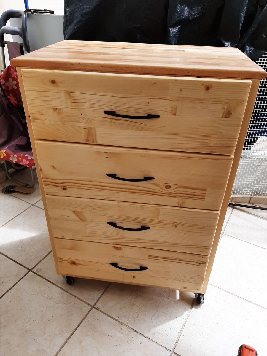 Χαλασε ενας μικρος πλαστικος "μανάβης" στη κουζινα κ (πριν ανοιξουν) τα μαγαζια προσπαθησα να φτιαξω εναν απο οτι ρεταλια ειχα στο μπαλκονι. Το σκελετο τον εκανα απο δοκαρακια που ειχα με τρυπες σα νταβιδια κ τα συρταρια απο ενα κουτι osb για να βαζω εργαλεια. Βασικα δεν ειναι μαστορεμα ημερας αλλα γιοφυρι της Αρτας (το ξεκινησα πριν 3 εβδομαδες με αμφιβολο αποτελεσμα γιαυτο δεν εχω αρχικες φωτο) γιατι με 3 κορες κ η μια 4 μηνων εχω ελαχιστες ωρες εκτος δουλειας για μαστορεματα. Το εχω περασει 2 χερια αχρωμο βερνικι εμποτισμου κ θα το περασω τωρα αχρωμο κρουστας. Το κακο ειναι οτι δεν τα υπολογισα καλα κ αν ανοιξεις κ τα 4 συρταρια με βαρος μεσα δεν ειναι αρκετα βαρυ κ φεύγει μπροστά πραγμα επικίνδυνο για σπιτι που κυκλοφορουν παιδια. Αλλη λυση εκτος απο το βιδωμα στο τοιχο υπαρχει; για να αποφυγω τη τρυπα μιας που η σπιτονοικοκυρα μενει απο πανω κ θα παρει τηλεφωνο μολις πατησω το δραπανο. (Εχει ξαναγινει) Εξάλλου αν το βιδωσω δεν εχουν νοημα κ τα ροδακια. Διορθωνεται; Να του βαλω βαρος στη βαση ή να το διαλύσω;- 2.882 απαντήσεις
