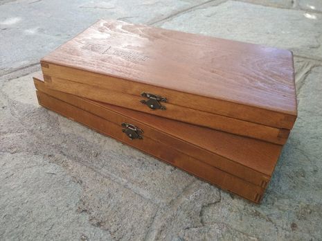 Ορμωμενος απο τη παραγγελια ενος παχυμετρου ανευ θηκης, εφτιαξα δυο θηκες απο συνδιασμο ξυλων. Εκανα μια προσπαθεια για μισοχαρακτες (στα γρηγορα), βαψιμο ανιλινης, τοποθετηση μινι μεντεσεδων, και μαγνητων, περασμα με βερνικη σπρευ και βουαλα! Το φοαμ ειναιναπο συσκευασια βρυσης. Το παχυμετρο ειναι κινεζος, δεν ηρθε ακομη το τζαπονι.