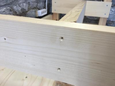 Και εχθές μπήκε και το osb στον τοίχο για τα εργαλεία. Ανοίχτηκαν τρύπες στις 4 άκρες του κάθε osb, ώστε να χωράνε ακριβώς οι παρακάτω βίδες: Να και οι τρύπες: Έπειτα έβαλα αποστάτες (ξύλα πάχους 10 cm) στο μέσα ξύλο των πάγκων, οπότε τα osb ζυγίστηκαν απο μονα τους στα 10 cm πάνω απο το όρθιο ξύλο του πάγκου. Επειδή είχα σκεφτεί να βάλω συρτάρια για βίδες κτλ, στο αριστερό κομμάτι του τοίχου που είναι κενό τώρα, είχα πάρει μικρότερα osb για να μην καλύπτουν όλο τον πάγκο. Αλλα επειδή το μετάνιωσα, θα πάρω άλλο ενα κομματάκι, και τα συρτάρια θα τα βάλω αριστερά του πάγκου. Αυτό γιατι καλό είναι να μπορείς να πλησιάσεις πολύ κοντά στα συρτάρια για να δεις μια λεπτομέρεια, ενω αν τα έβαζα πάνω απο τον πάγκο, δεν θα έφτανα να πλησιάσω κοντά. Ούτως ή άλλως αριστερά του πάγκου έχω 40 πόντους ανεκμετάλλευτους, ακριβώς δηλαδή όσο είναι τα συρτάρια. Πιο κάτω θα δείτε πως έχω ακουμπήσει πρόχειρα τις μέγγενες και τα μηχανήματα που θέλω να βάλω στον πάγκο. Απο αριστερά προς δεξιά είναι: Μέγγενη ξυλουργική, μέγγενη σιδηρουργείου, κάθετο δράπανο lidl, φλατσοπρίονο lidl, σταθερός ταινιολιαντήρας. Θα είχατε καμία πρόταση αν είναι σωστές οι θέσεις που τα έχω βάλει? Τα μηχανήματα δε με πειράζουν τόσο πολύ, γιατι δεν θα τα δέσω, οπότε θα μπορώ να τα μετακινώ. Πιο πολύ με ενδιαφέρει για τις μέγγενες, γιατι αν βιδωθούν, τέρμα...Η λογική μου λέει να βάλω την ξυλουργική αριστερά, γιατι αριστερά ο πάγκος έχει χώρο κενό, οπότε μπορώ να δουλέψω κάτι και κάθετα. Επίσης μπορώ να βάλω ενα μεγάλο ξύλο και έχω χώρο και αριστερά και δεξιά απο τη μέγγενη. Αυτό γιατι κυρίως ασχολούμαι με ξύλα...Αν έχετε κάποια πρόταση παρακαλώ πείτε μου..... -