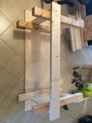 Καλησπέρα παιδιά. Πριν λίγο καιρό έφτιαξα ενα χώρο στην πίσω αυλή του σπιτιού, για να γίνει εργαστήριο... Επειδή πήρα πολλές πληροφορίες και συμβουλές απο το forum σας, θα ήθελα να σας το παρουσιάσω σε εικόνες, μαζί με την κατασκευή των πάγκων του κτλ... Αφιερωμένη η παρουσίαση σε όλους όσους μου έδωσαν συμβουλές και οδηγίες σε διάφορα θέματα που ρώτησα... Σας ευχαριστώ πολύ! Λοιπόν, ο χώρος έχει διαστάσεις 4.20 χ 3.50. Οι δύο πλευρές του είναι απο πέτρα και είναι ουσιαστικά η μάντρα του κήπου, η οποία υψώθηκε κατα ενα περίπου μέτρο και έγινε περίπου 2.60. Οι άλλες 2 πλευρές είναι απο τσιμεντόλιθο, σε ύψος περίπου 2.20. Πάνω μπήκε πάνελ πολυουρεθάνης για σκεπή, το οποίο στηρίχθηκε πάνω σε δυο σιδερένιους δοκούς. Παράθυρα και πόρτα τα αγόρασα μεταχειρισμένα και τα 3 στα 140 ευρώ απο car.gr. Ως εδω όλα έγιναν απο μάστορες, δεν ασχολήθηκα με τα χτισίματα...Φωτογραφίες του χώρου δεν έχω πανοραμικές, θα βγάζω στην πορεία... Πάμε τώρα στους πάγκους. Έφτιαξα 3 πάγκους: Ενας για βαριές δουλειές και κρούσεις, με δύο μέγγενες πάνω-μια για σίδερα και μια για ξύλα. Ενας για να ακουμπήσουν πάνω μηχανήματα κοπής ξύλου κτλ.. Και ενας τελευταίος πιο μικρός για πιο λεπτοδουλειές, ηλεκτρονικά κτλ. Πρώτα έφτιαξα ενα σχεδιάκι για τον κάθε πάγκο σε χαρτί. Τα σχέδια είναι πρόχειρα, τα έφτιαξα μόνο για εμένα, αλλα σας τα δείχνω, μη με παρεξηγήσετε... Πιο κάτω είναι το σχέδιο για τον πάγκο με τις μέγγενες. Έχω πάρει τη λογική απο τον πάγκο του αρχιμάστορα sellers, αλλα με δικές μου τροποποιήσεις. Έχει διπλό κοντρα πλακέ θαλάσσης 2 εκατοστών. Εδω θα βιδωθούν δεξιά μια μέγγενη ridgid superior 120 και αριστερά μια μέγγενη ξύλου https://www.amazon.co.uk/gp/product/B0043YHD4A/ Πριν ξεκινήσω να δείχνω την κατασκευή βήμα-βήμα, σας αναφέρω τον τρόπο που χρησιμοποιώ για την ένωση των ξύλων, ο οποίος είναι ίδιος για όλους τους πάγκους. Πρώτα γίνεται τρύπα με τρυπανάκι που έχει και οδηγό-πατούρα πάνω. Οπότε προκύπτουν οι παρακάτω τρύπες: Μετά βάζουμε ξυλόκολλα στην επιφάνεια που θα κολλήσουμε. Δεν πρέπει να βάζουμε πολύ κόλλα, αφου με την τεράστια πίεση που θα δώσουν οι βίδες θα απλωθεί παντού. Προτιμούμε ξυλόκολλα κρυσταλιζέ: Τέλος βιδώνουμε με ηλεκτρικό μηχάνημα (εγω εχω ενα θηριάκι bosch gbh 2-28). Καλύτερα να βάλουμε ξυλόβιδες όπου το σπείρωμά τους δε φτάνει μέχρι το κεφάλι. Αυτό γιατι όσο πιο πολύ σφίγγουμε, τόσο πιο πολύ ενώνουμε με δύναμη τα δυο κομμάτια. Ακόμα και στο μέλλον να χρειαστεί να ξανασφίξουμε αν πχ μας χαλαρώσει το σφίξιμο, πάλι θα μπορέσουμε να του δώσουμε σύσφιξη. Ενω οι βίδες που είναι όλο σπείρωμα δεν μπορούν να πετύχουν το ίδιο αποτέλεσμα σύσφιξης και συγκόλλησης. Καλύτερα να βάλουμε βίδες με μεγάλο κεφάλι, ώστε να βιδώσουμε άνετα και με όση δύναμη θέλουμε. Προσωπικά χρησιμοποιώ για απλές δουλειές γαλβανιζέ βίδες με κεφαλή PZ3: Πιο κάτω είναι το σύνολο των ξύλων που χρησιμοποιήθηκαν. Όλα τα ξύλα τα αγόρασα απο εργοστάσιο έτοιμα κομμένα στις διαστάσεις που τους ζήτησα. Ο πρώτος πάγκος φτιάχθηκε μέσα στο σπίτι (!!) και έπειτα μεταφέρθηκε στο εργαστήριο. Πάνω του φτιάχθηκαν οι υπόλοιποι πάγκοι: Παίρνοντας ως οδηγό το κόντρα πλακέ, ευθυγράμμισα τα δύο πόδια και στο πιο ψηλό τους σημείο βίδωσα το πλαινό: Ύστερα βίδωσα το κάτω πλαινό, σε απόσταση 24 cm απο το πάτωμα. Και έτσι έχουμε τα δύο πόδια έτοιμα: Με τον ίδιο τρόπο και τα άλλα δύο πόδια: Ξαπλώνουμε τα δυο πόδια και με οδηγό πάλι το κόντρα πλακέ (μετρώντας και με το μέτρο συνεχώς βέ