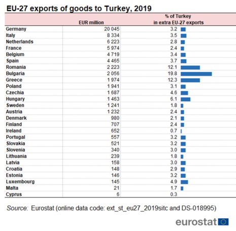 Οι λόγοι είναι πάντα αρκετά σύνθετοι για να αναλυθούν σε λίγες προτάσεις όμως στην ερώτησή σου περί κλίμακας συμφερόντων ίσως να απαντά ο πρόσφατος πίνακας της eurostat με τις εξαγωγές των χωρών μελών της ΕΕ προς την γειτονική χώρα. Αυτός δίνει μια πρώτη απάντηση, χωρίς να υπολογίζονται οι σύνθετες εταιρικές σχέσεις και η συμμετοχή γερμανικών κεφαλαίων στην τουρκική οικονομία. Φυσικά οι σχέσεις δεν περιορίζονται μόνο σε (σημαντικούς) αριθμούς αλλά επεκτείνονται στον χώρο της γεωστρατηγικής, που έχει να κάνει με τις προθέσεις κρατών να διατηρήσουν ή διευρύνουν την επιρροή τους σε χώρους που δεν περιορίζονται στα γεωγραφικά τους όρια. (Ένα παλαιότερο σχετικό άρθρο στο bloomberg, έχει αξιοποιηθεί ως πρωτόλειο υλικό για απλοποιημένες καταγραφές στα Ελληνικά.)- 715 απαντήσεις