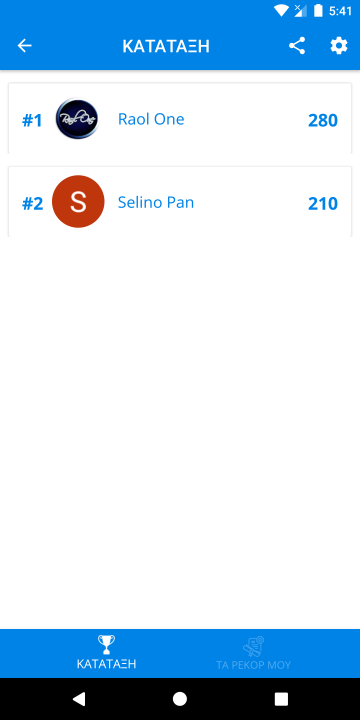 το συνολικό σκορ του που προκύπτει απο το άθροισμα των κατηγοριών, εμφανίζεται στον πίνακα κατάταξης καθώς και η θέση του σ'αυτόν.