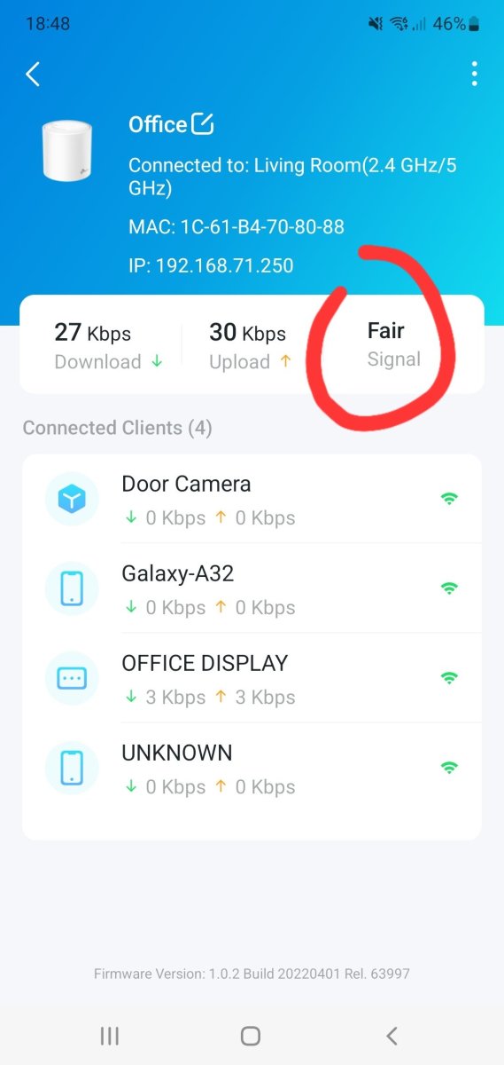 Καλημέρα, χθες προχώρησα σε μια αλλαγή του οικιακού δικτύου. Αφαίρεσα το Xiaomi Redmi Router AC2100 2033Mbps 2.4G 5G, το οποίο έπαιρνε internet από το modem του παρόχου ZTE H288A και στην θέση του μπήκε το TP-LINK DECO X20 AX1800 WHOLE HOME MESH WI-FI 6 SYSTEM. Οι οδηγίες εγκατάστασης μέσω της εφαρμογής ήταν πολύ απλές. Στην συνέχεια "κάρφωσα" πάνω του, όλες τις έξυπνες συσκευές του σπιτιού (κάμερες, google nest, hub κλπ). Στο δίκτυο μπήκε ακόμα ένα Deco σε άλλο δωμάτιο του σπιτιού. Η απόσταση του ενός deco απο το άλλο είναι μικρή. Μπαίνοντας στην εφαρμογή είδα ότι το σήμα wifi στο ένα deco δεν είναι full.... Είναι λογικό ; Επίσης είναι λογικό να υπάρχει μεγάλη απόκλιση στις ταχύτητες ; Δηλαδή την μια δείχνει 700+ και το επόμενο δεύτερο δείχνει πχ 6-7... Υποτίθεται ότι τα 2 Deco καλύπτουν 350τμ... Υπάρχουν τίποτα ρυθμίσεις που πρέπει να κάνω ;