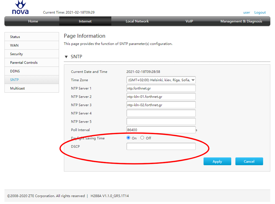 Καλημέρα, ο τρόπος σύνδεσης είναι όπως και πριν. Να σου πω την αλήθεια, πριν μου το πεις, χωρίς να κάνω καμία ενέργεια στο 288 (εκτός απο το να κλείσω το wifi), πήγα και απενεργοποίησα το DHCP στο ΧΙΑΟΜΙ. Και όλα δούλευαν κανονικά. Τώρα το πρωί που ξύπνησα είδα ότι όλες οι συσκευές (κινητό, google nest hub & google nest hub max) στις οποίες μπορώ να δω άμεσα, λόγω ύπαρξης οθόνης, εαν υπάρχει wifi, έγραφαν "NETWORK PROBLEM". Πριν τις αλλαγές απλά έγραφαν ότι υπήρχε πρόβλημα στο wifi. Τώρα λένε αυτό "Network Problem". Το XIAOMI παραμένει με τον ίδιο τρόπο σύνδεσης. Δηλαδή από μια lan του 288 φεύγει καλώδιο και πάει στην θύρα internet του XIAOMI. Μπήκα τώρα στο 288 και το μόνο που βλέπω σχετικά με DHCP είναι αυτό στην φώτο...