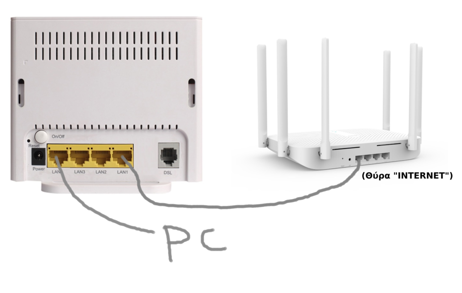 Από την LAN1 (modem παρόχου) φεύγει καλώδιο που κουμπώνει στην θύρα INTERNET του XIAOMI. Μπορεί να συνδεθεί το PC στο XIAOMI απλά εαν μπορώ να το αποφύγω, θα το προτιμήσω για να μην έχω πολλά καλώδια σκόρπια. Τώρα εαν αυτό είναι πρόβλημα τι να κάνω αναγκαστικά θα το συνδέσω έτσι.