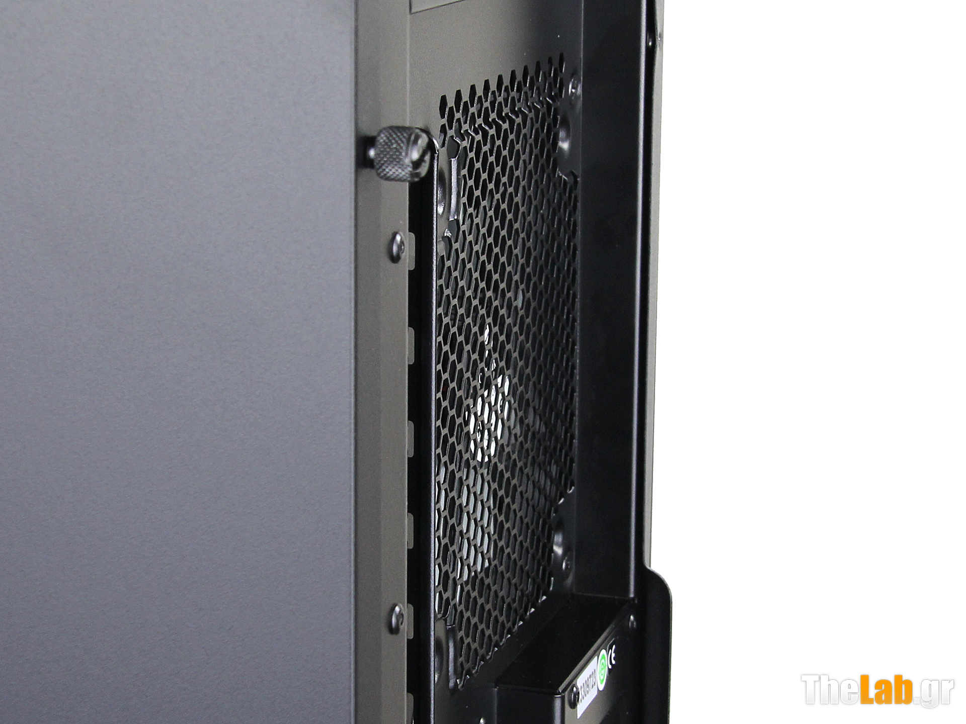Λίγο πιο κάτω είδαμε τα εννιά expansion slots και τις δύο οπές -που διαθέτει το κουτί- για την εγκατάσταση κάποια εξωτερικής μονάδας watercooling, οι οποίες δεν είναι εξοπλισμένες με grommets.