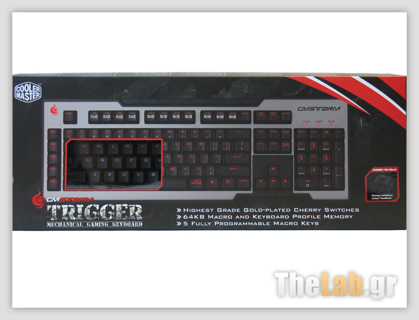 Από τα χαρακτηριστικά και την εμφάνιση του, καταλαβαίνουμε ότι το CM Storm Trigger είναι μια βελτίωση του παλιότερου μοντέλου CM Storm Quickfire Pro. Κάποια άλλα χαρακτηριστικά που αναγράφονται είναι το επιχρυσωμένο braided καλώδιο 14Κ, το anti-ghosting έξι πλήκτρων (με το οποίο το πληκτρολόγιο αναγνωρίζει την ενεργοποίηση έξι πλήκτρων ταυτόχρονα), το USB 2.0 hub και η αντιολισθητική επίστρωση.