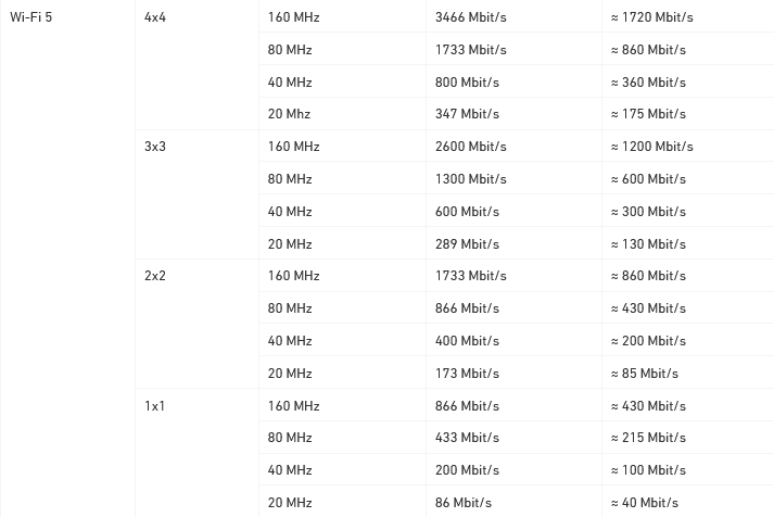 Αυτά είναι τα μέγιστα θεωρητικά. Στην παρακάτω εικόνα που στην 4η στήλη έχουμε τα μέγιστα θεωρητικά και στην 5η στήλη τα μέγιστα πρακτικά. Δεν είναι συγκεκριμένα για το 5690 Pro αλλά έχουν να κάνουν με την έκδοση του WiFi.