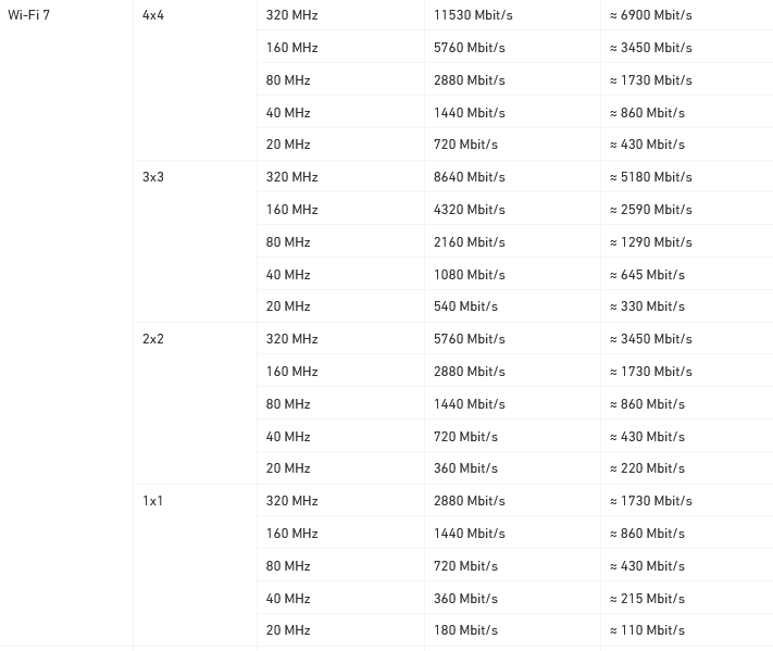 WiFi 7 4x4/triple band => 6 GHz: 11,53 GBit/s , 5 GHz: 5760 MBit/s, 2.4 GHz: 1200 MBit/s => smart steering, crossband repeating