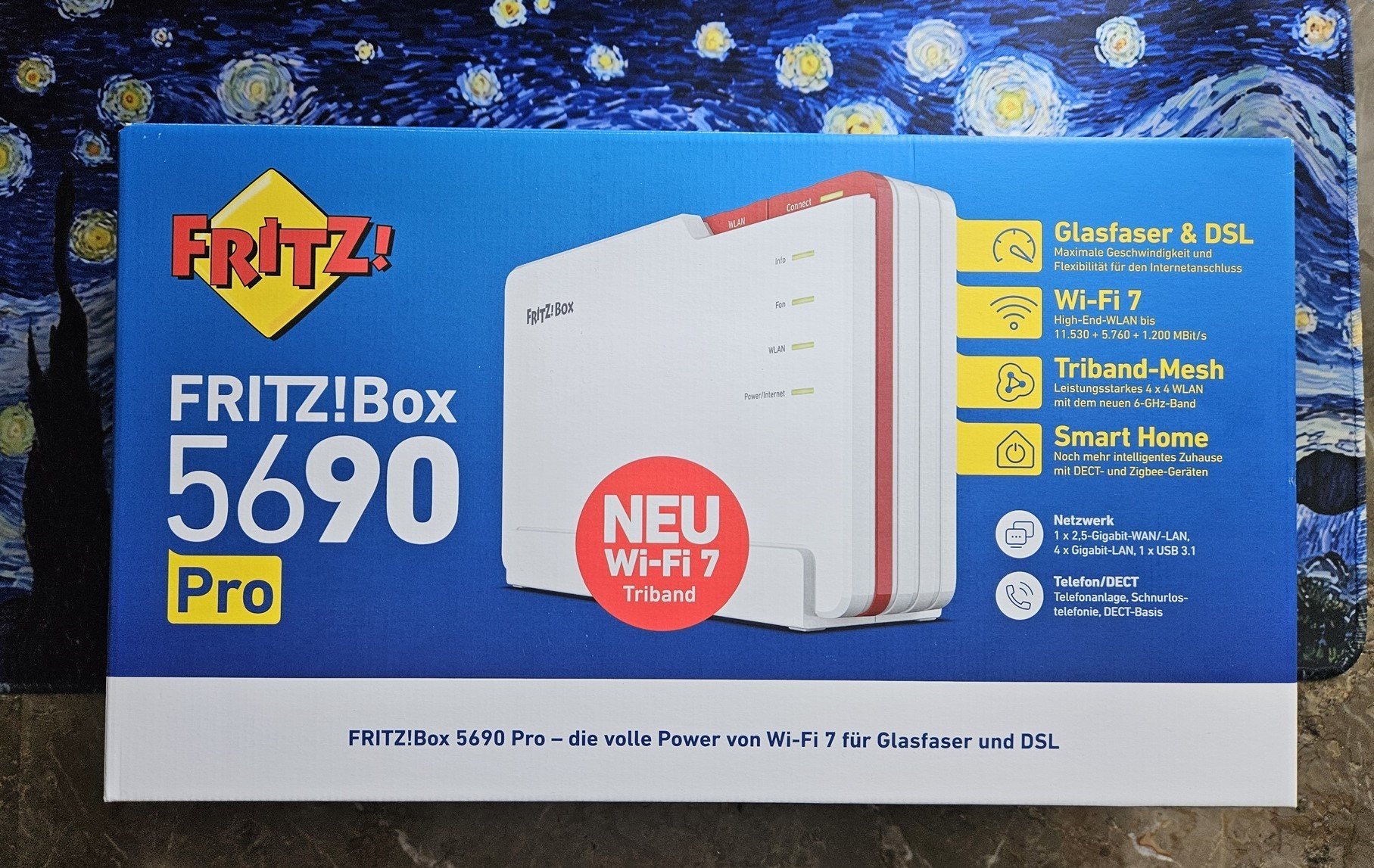 Κάτω κάτω αναφέρει: FRITZ!Box 5690 Pro - the full power of WiFi 7 for Fiber and DSL. Αυτό "πηγαίνει" όπως αναφέραμε και πιο πάνω στο ότι χρησιμοποιεί και το band των 6GHz για μέγιστες ταχύτητες.