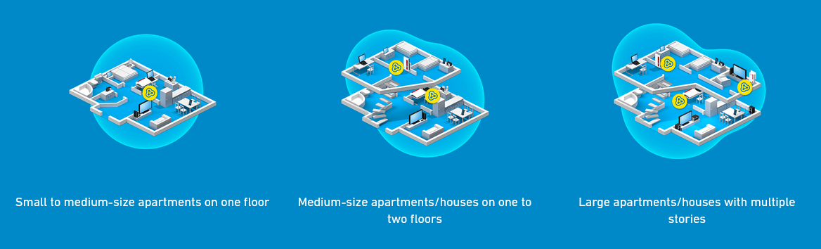 Με το δίκτυο mesh το WiFi δίκτυο μπορεί να επεκταθεί σε οποιοδήποτε μέγεθος χώρου. Από το πιο μικρό σπίτι μέχρι το πιο μεγάλο.