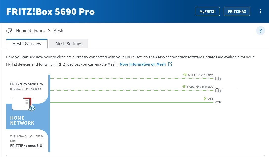 Το FRITZ!Box 5690 Pro και το FRITZ!OS 8 υποστηρίζουν δίκτυο mesh.