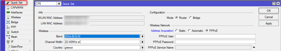 Φτιάξε από τον wizard τις ρυθμίσεις γιατί θέλει 3-4 πραγματακια το mikrotik. -